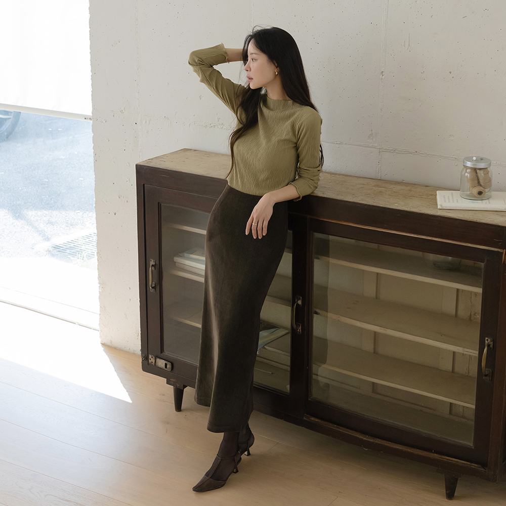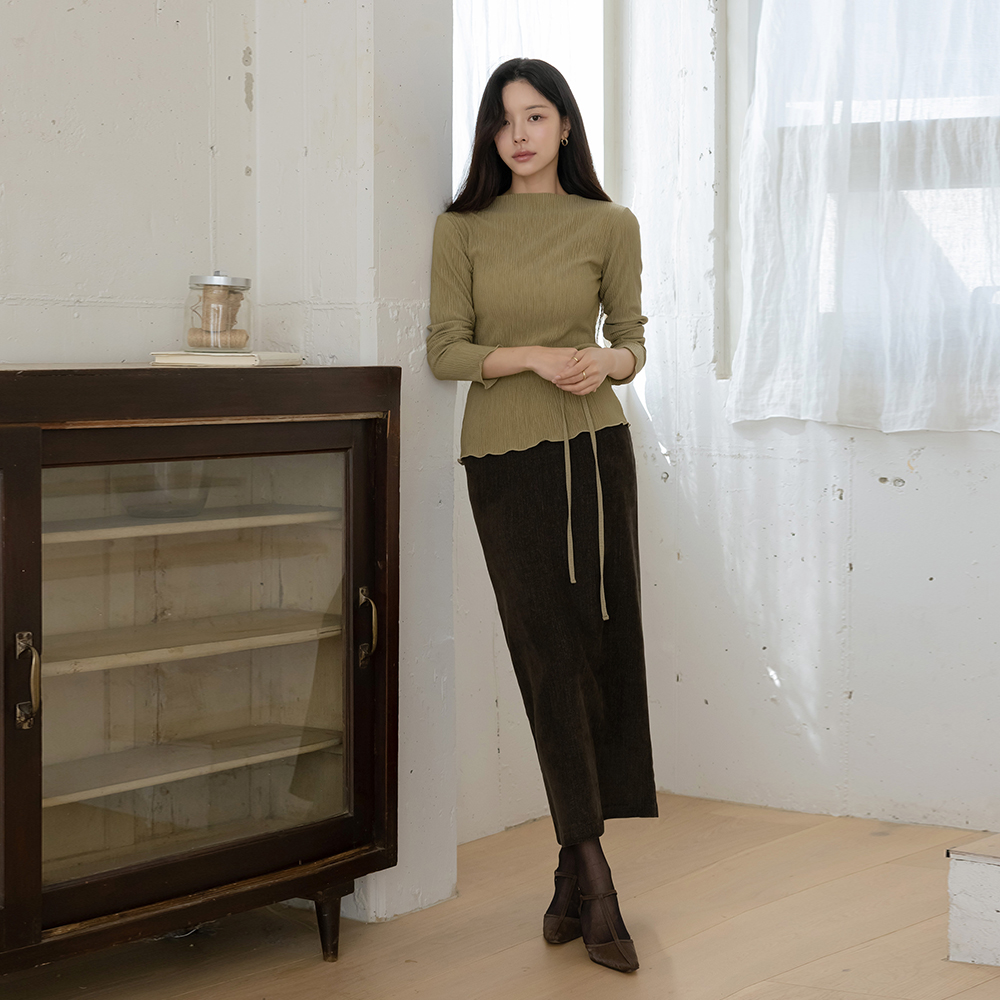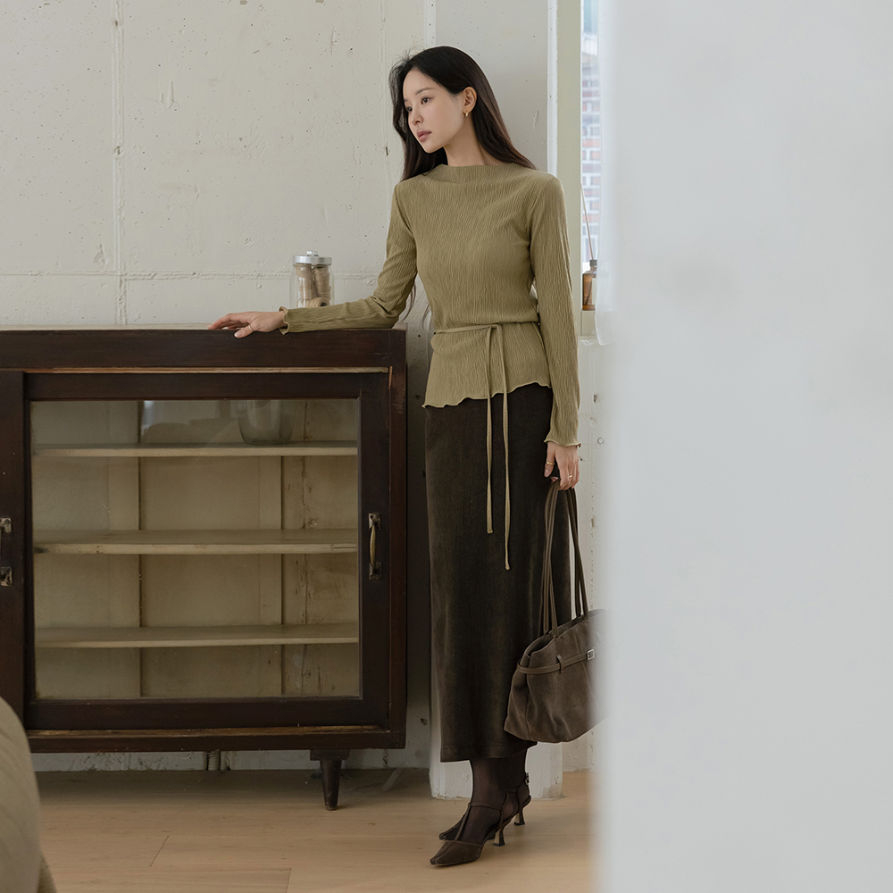 [O:neul] 去皱纹 半高领 漂亮的版型 T恤衫(+腰带)