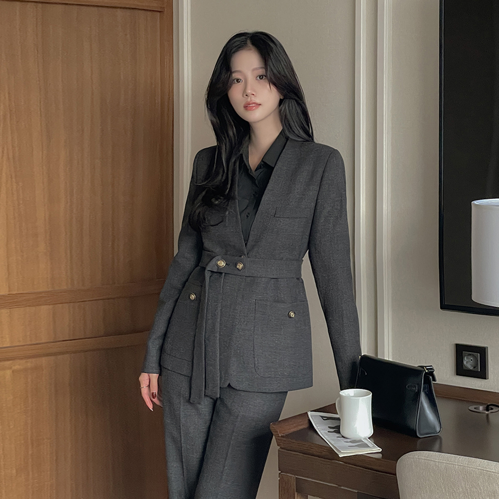 渲染 无领 Set-up 夹克(+腰带)