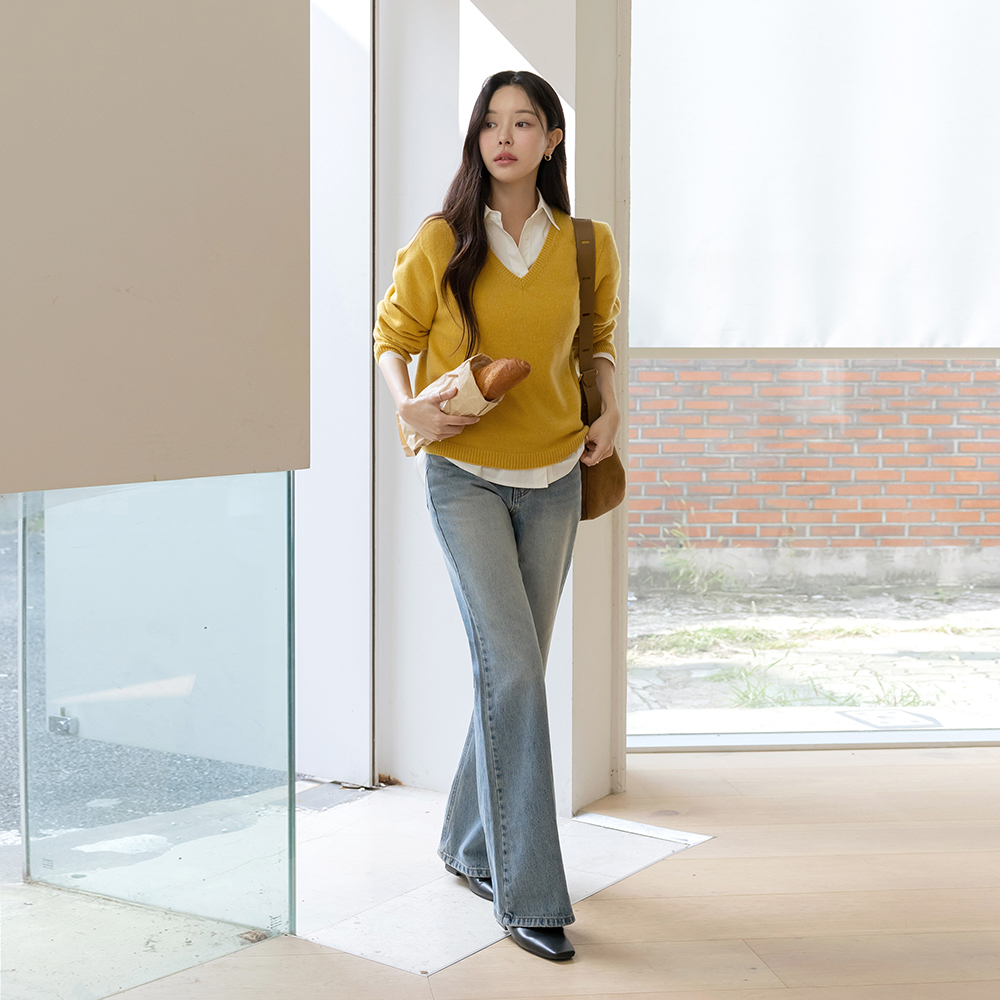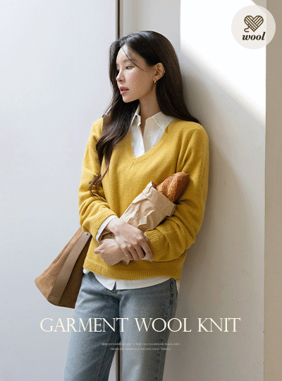 V字领 Whole Garment 羊毛 长袖 针织衫