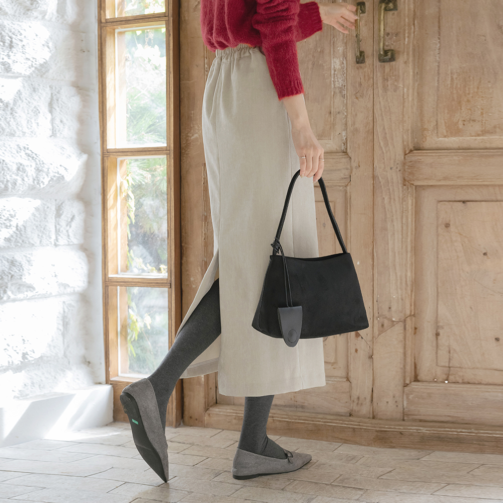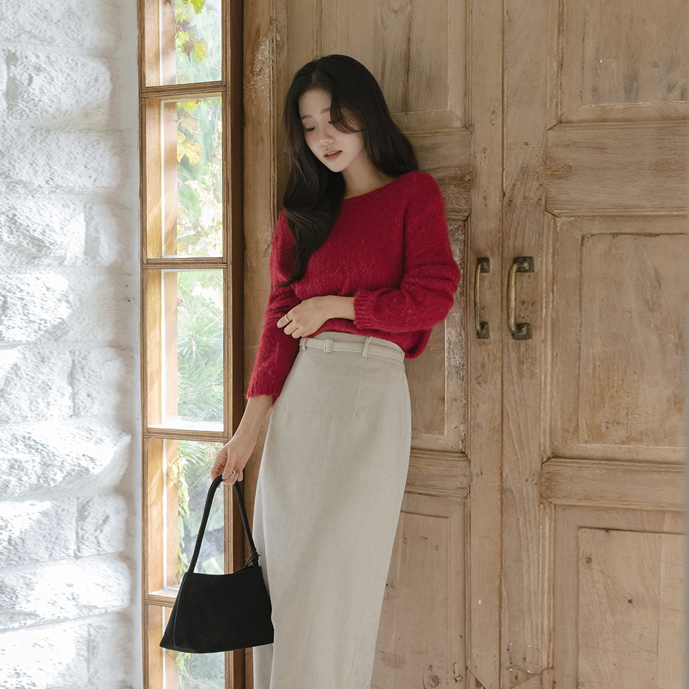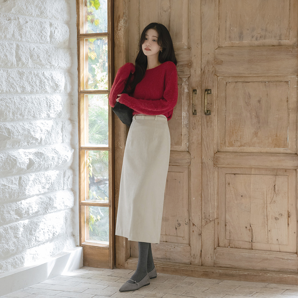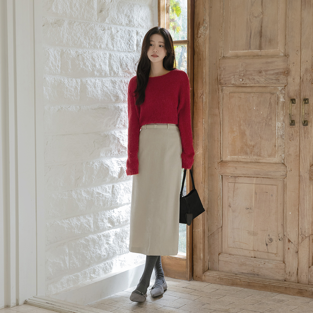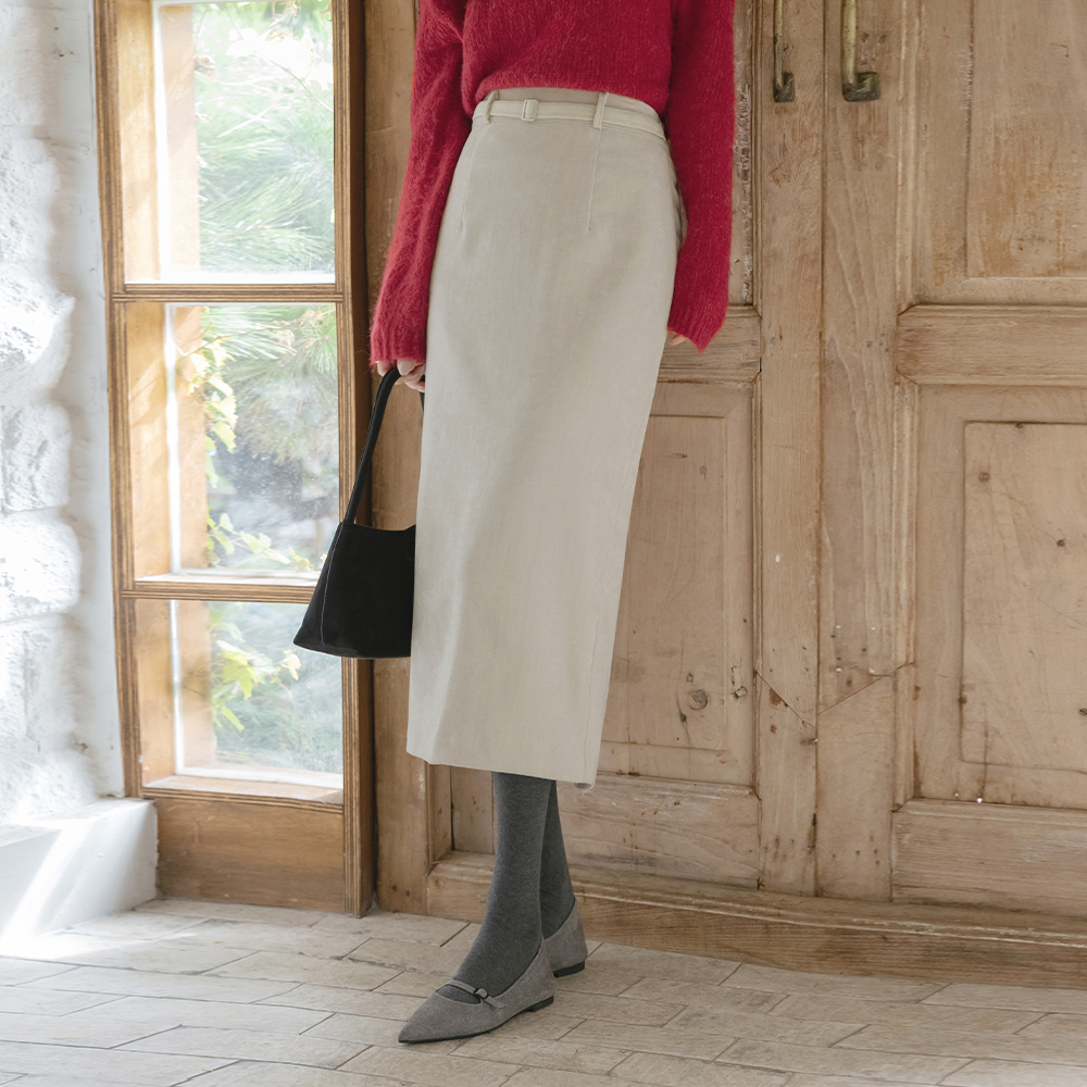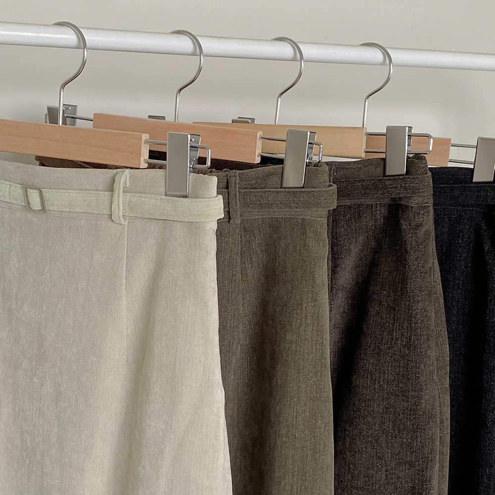 丝绒 腰带 点缀 后侧松紧带 H字型 裙子