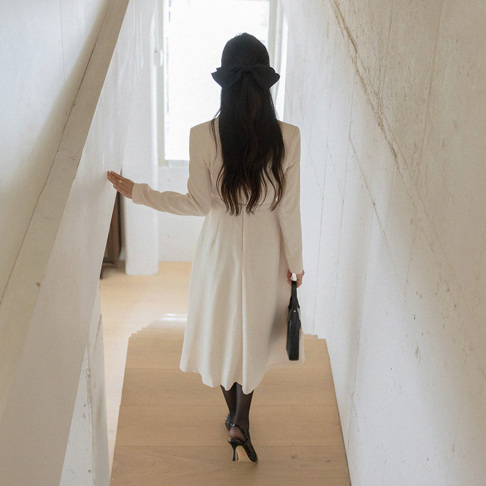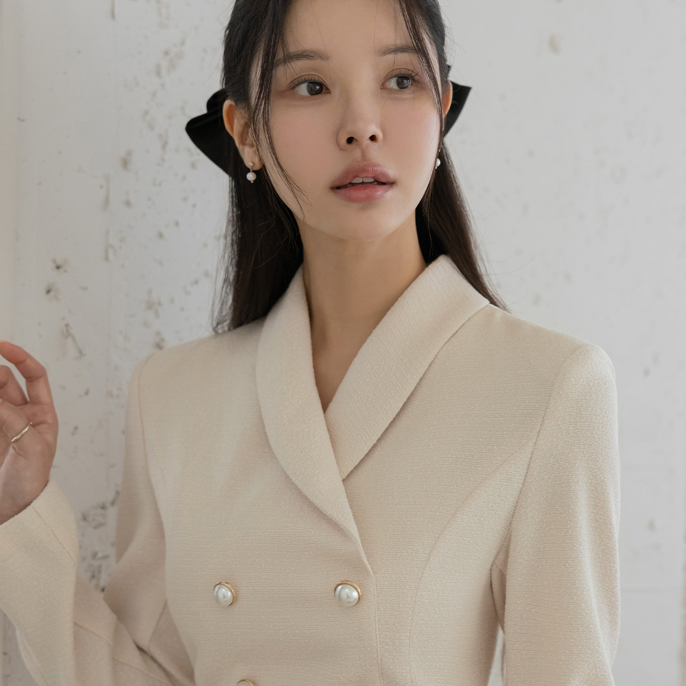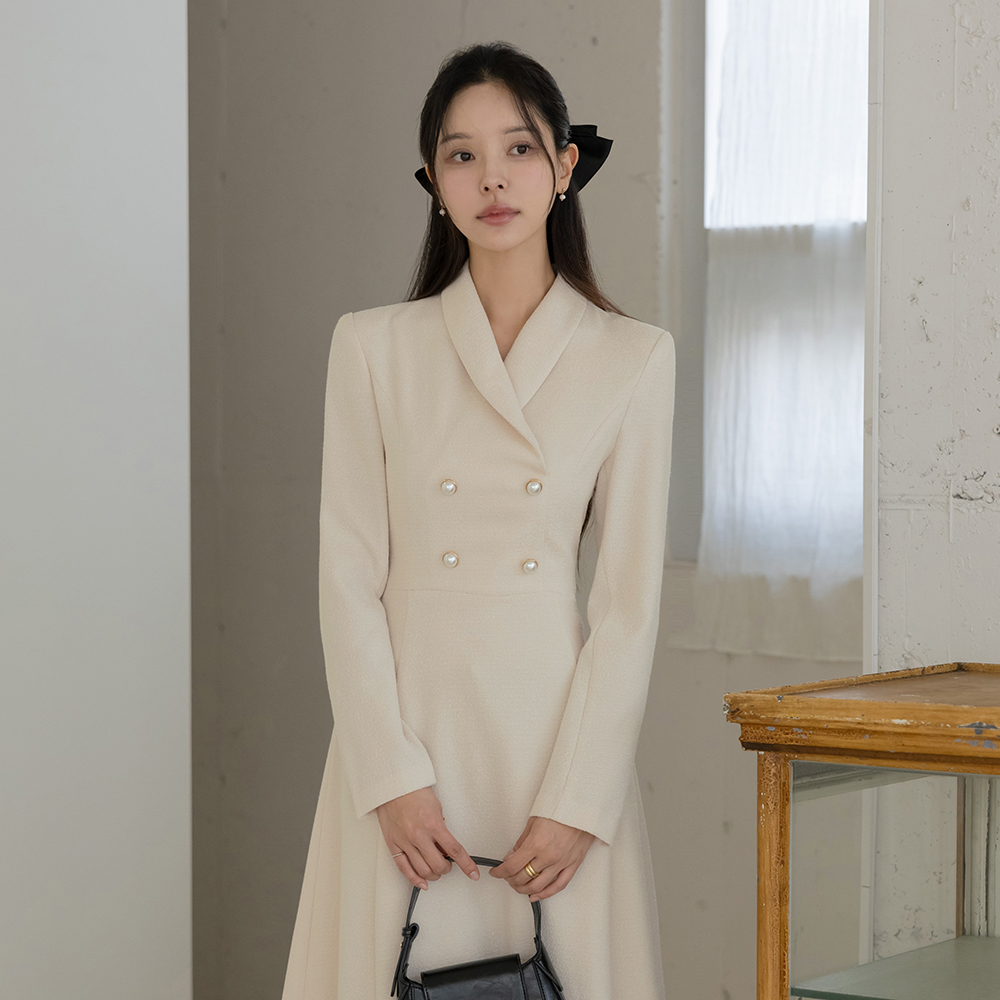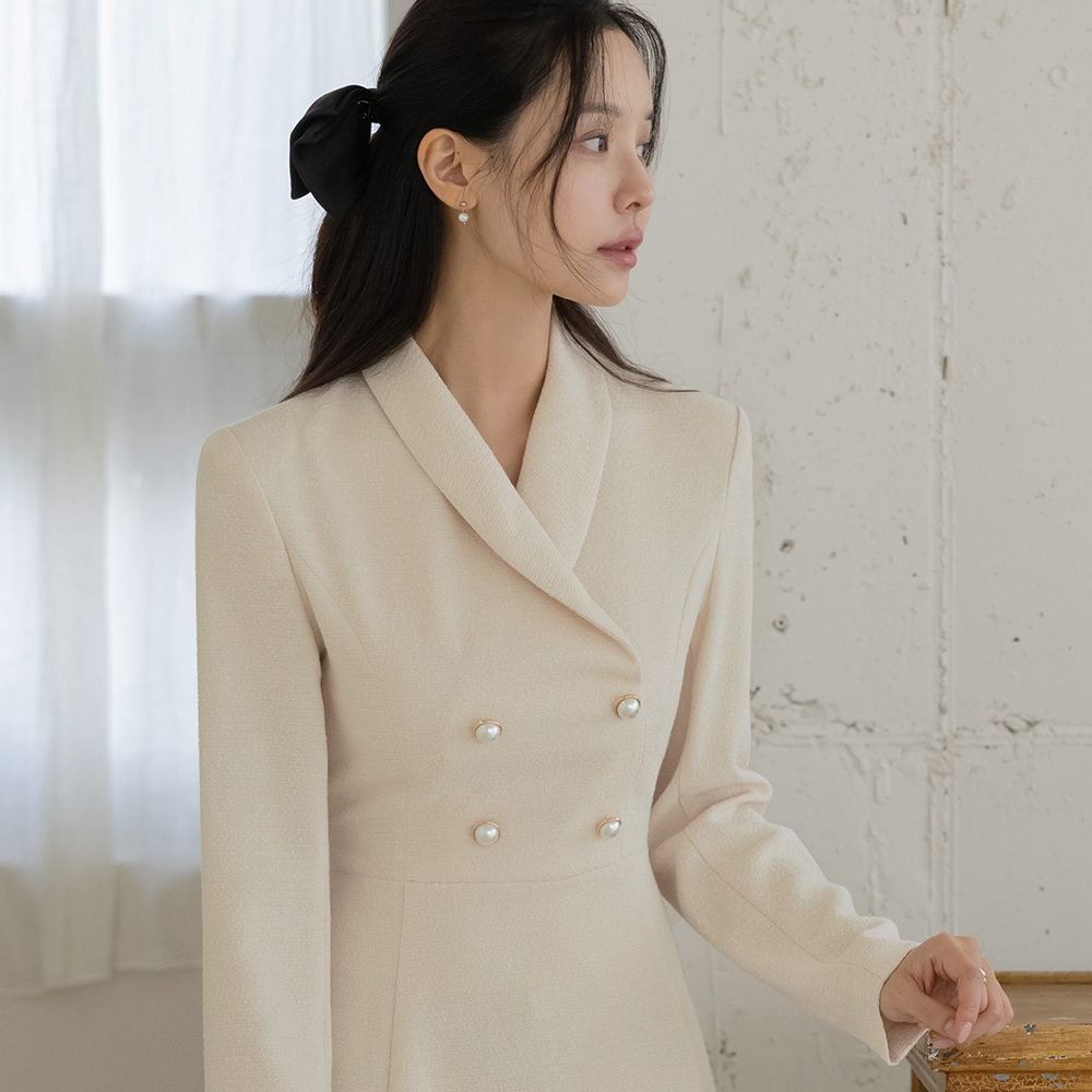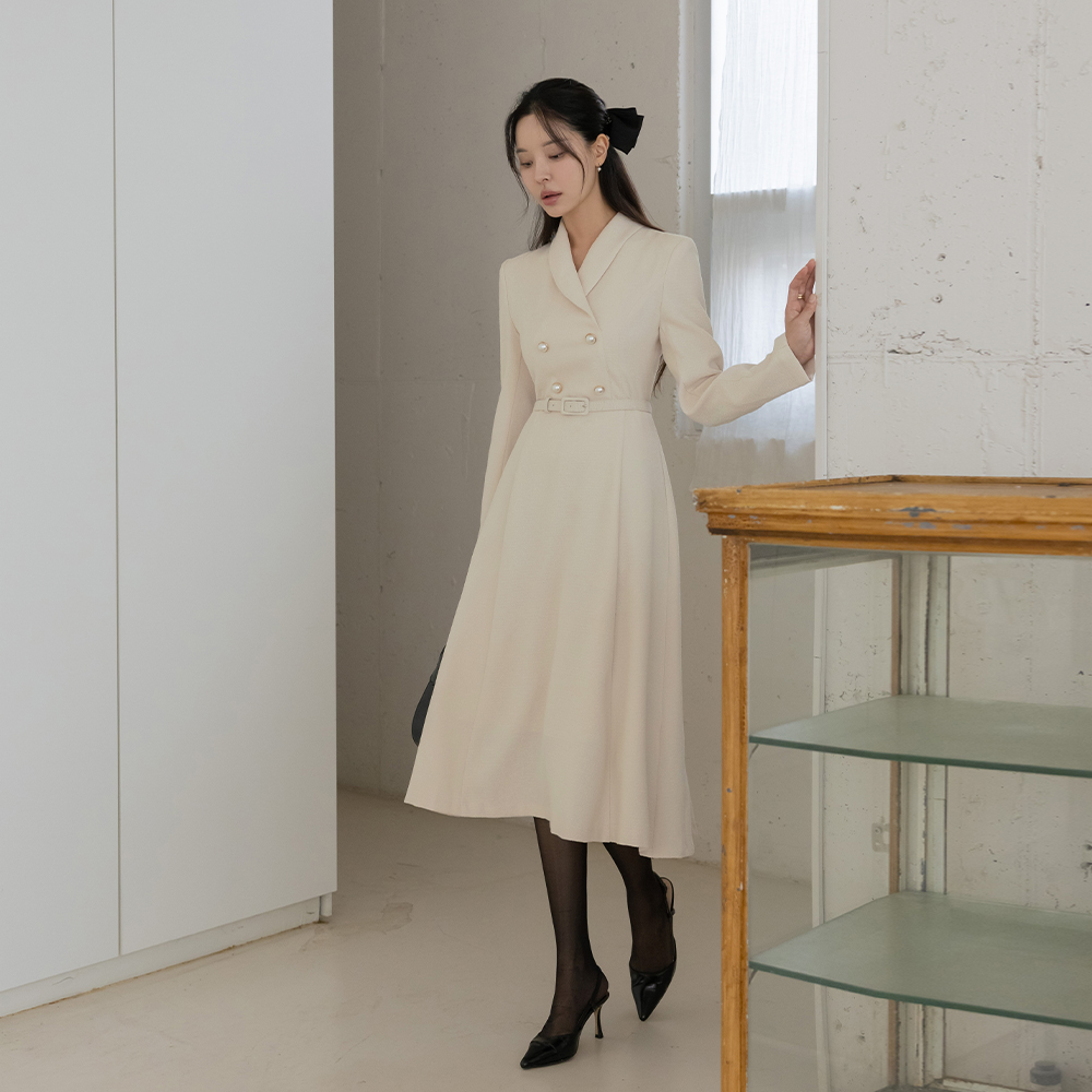 披巾领 珍珠扣 A字型 粗呢 连衣裙(+腰带)