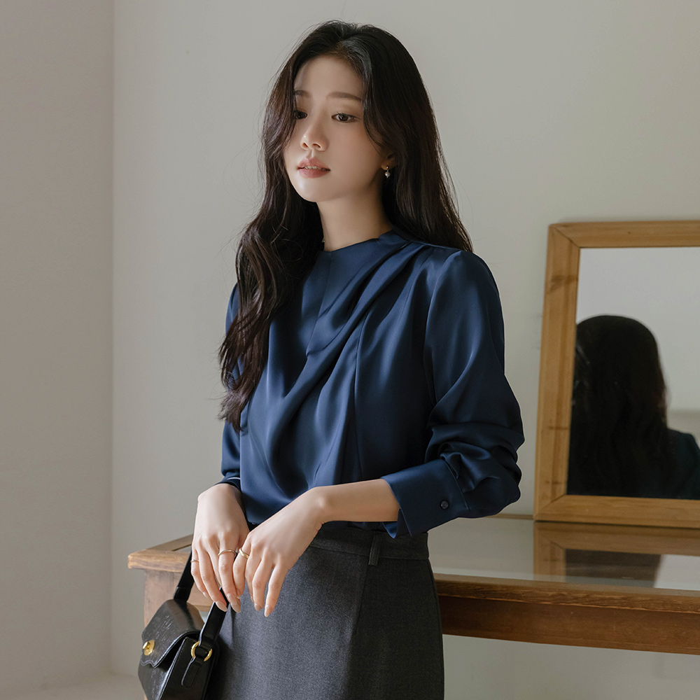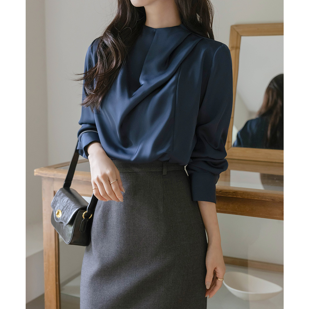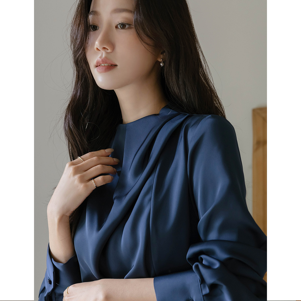高档 细褶领 绸缎 罩衫