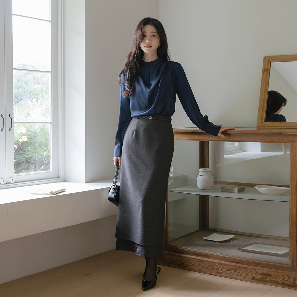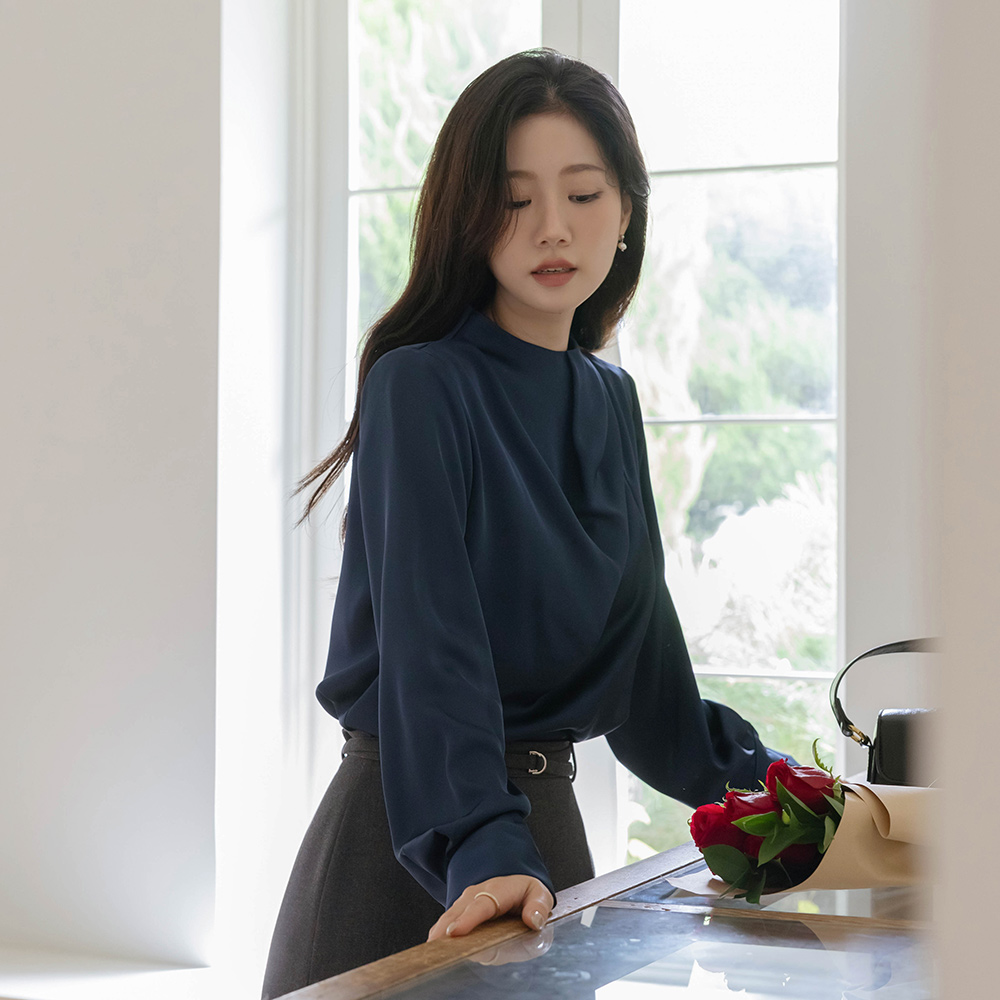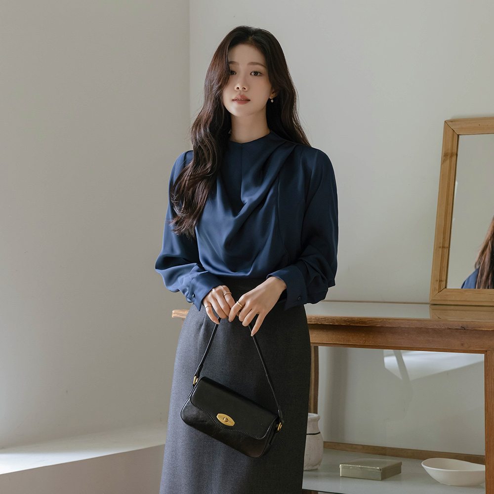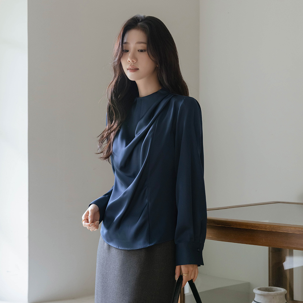 高档 细褶领 绸缎 罩衫