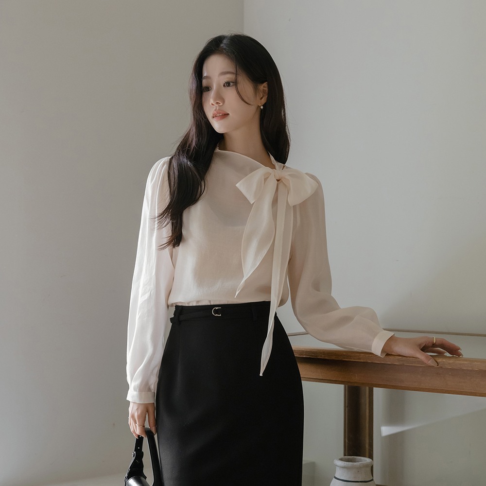 透视 配色 H字型 长款 裙子(+腰带)