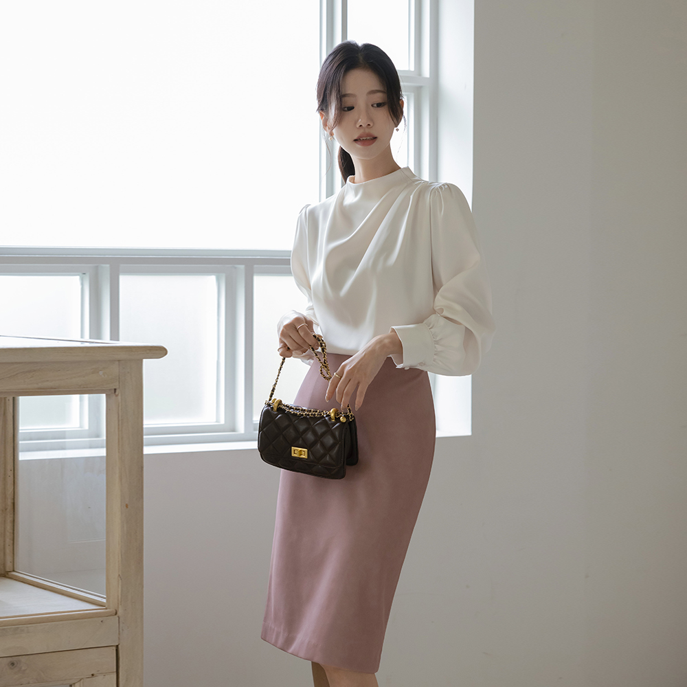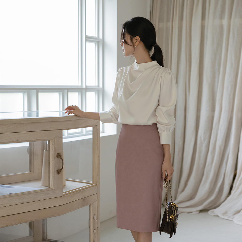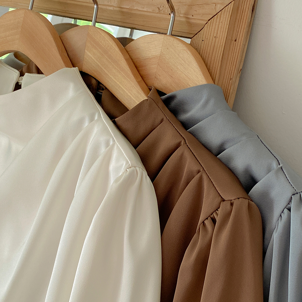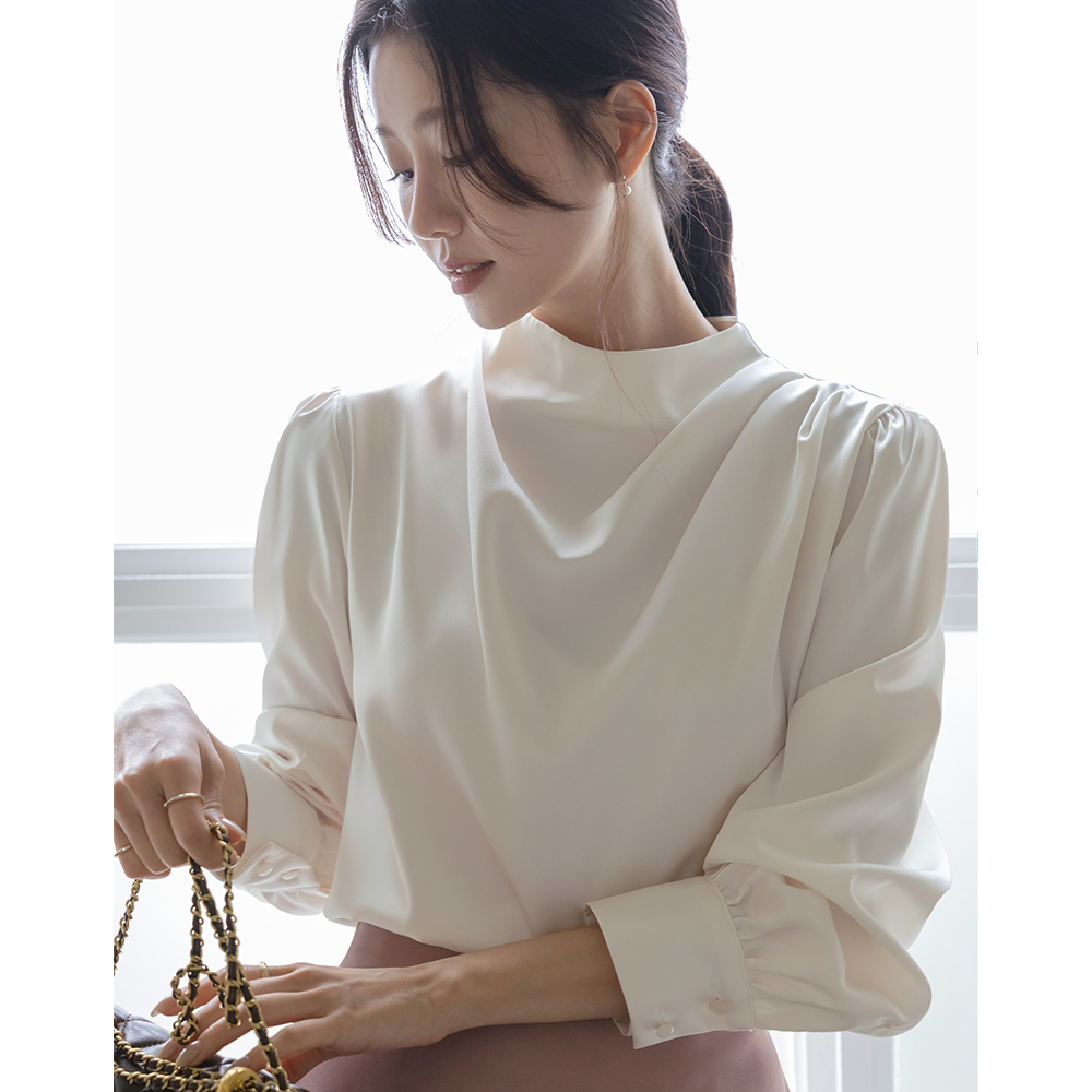 半高领 披盖 绸缎 罩衫