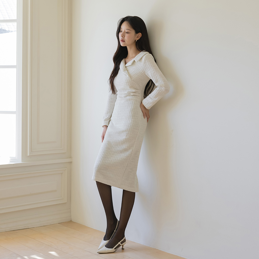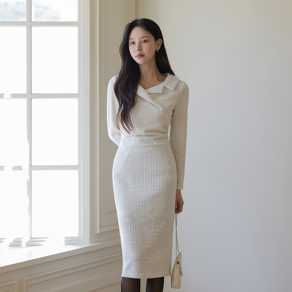 褶皱 裹身风格 羊毛 弹力 粗呢 连衣裙