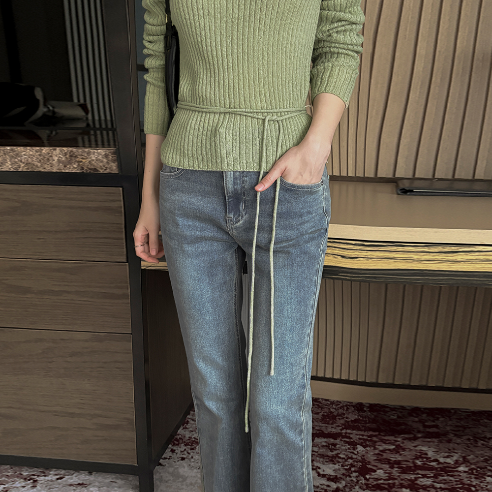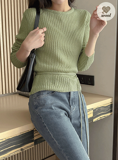 柔丝 斯利姆 羊毛&马海毛 条绒 针织衫(+腰带)