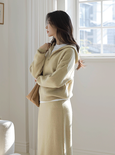 舒服 带帽 반집업 针织&裙子 SET