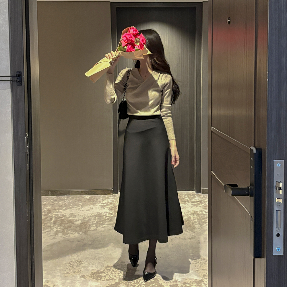 苗条 堆领 柔丝 针织衫