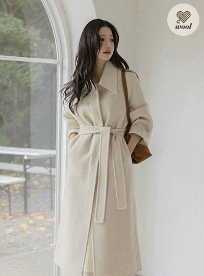 翻领 棉衣 马甲SET 羊毛 手工 长款 大衣(+腰带)