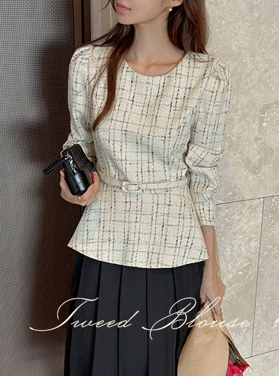 格子 粗呢 荷叶边 罩衫(+腰带)