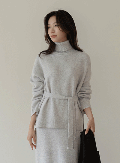舒适 貉子 高领 系带绳子 Set-up 针织衫