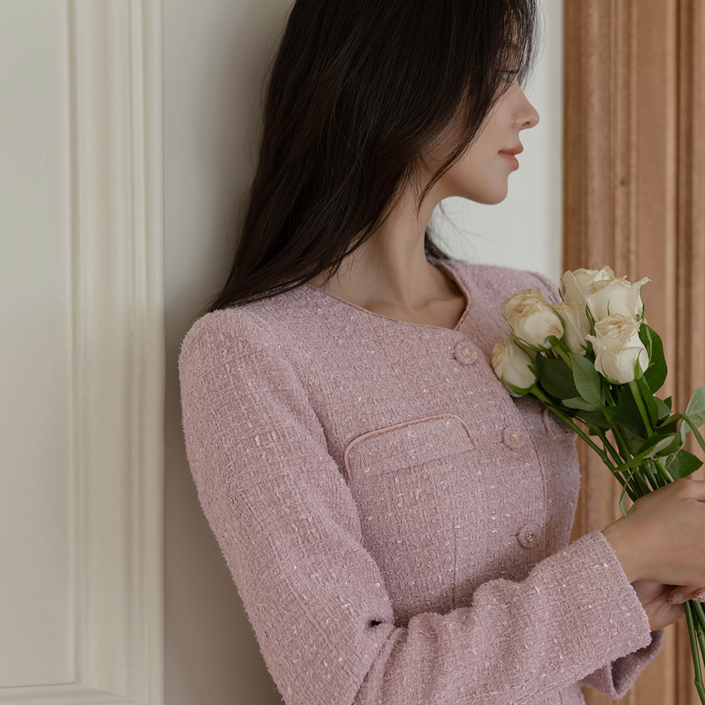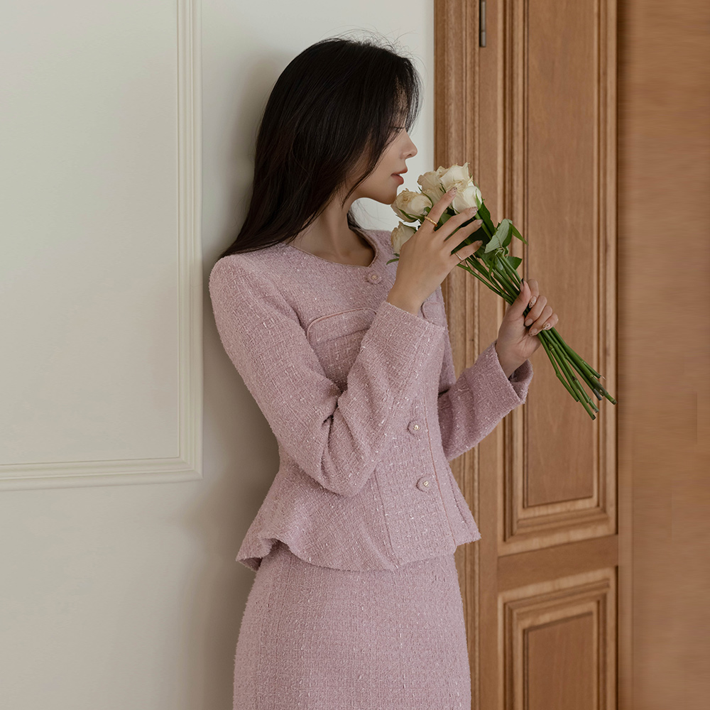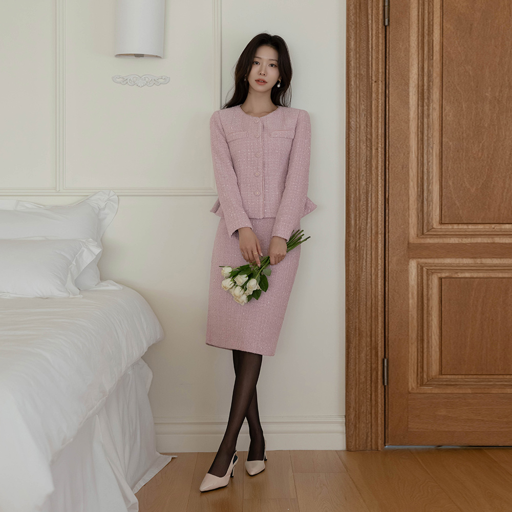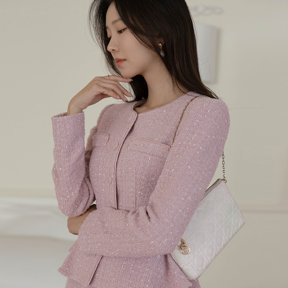 Eli 丝绒 羊毛 荷叶边 粗呢 Set-up 夹克