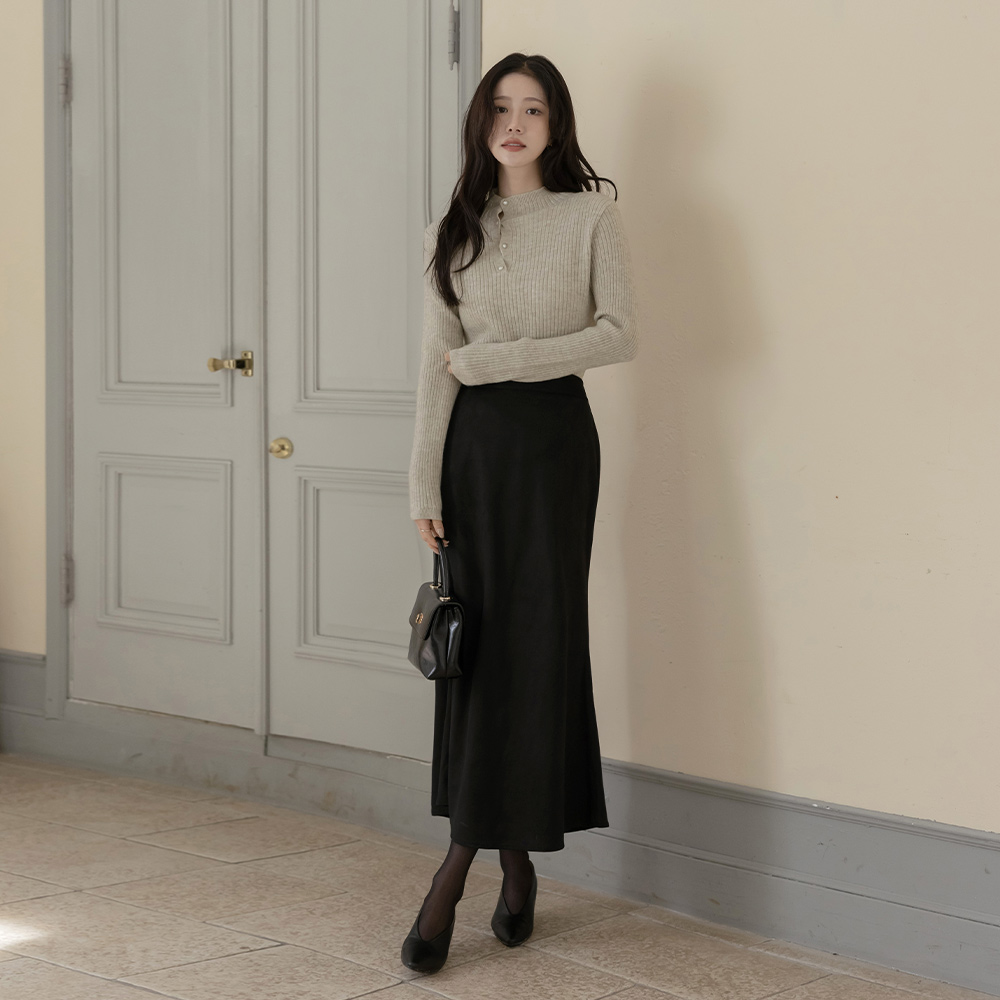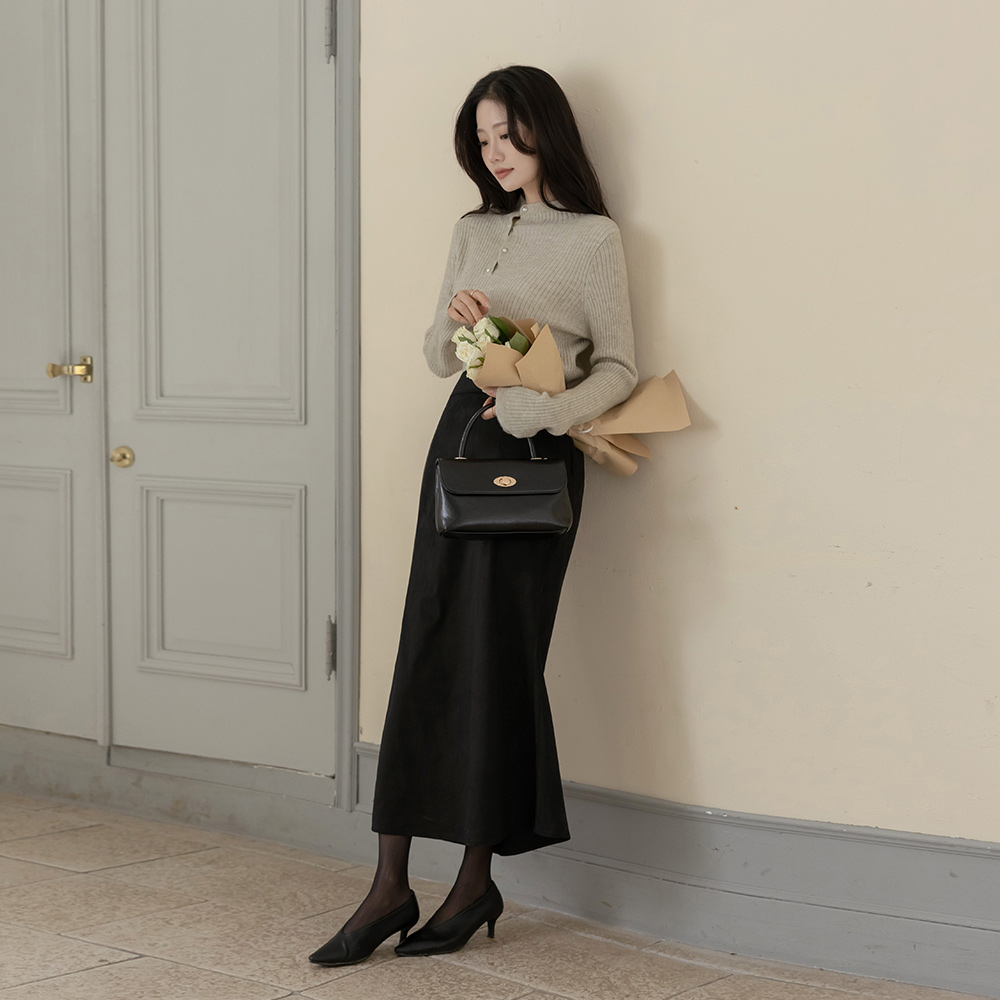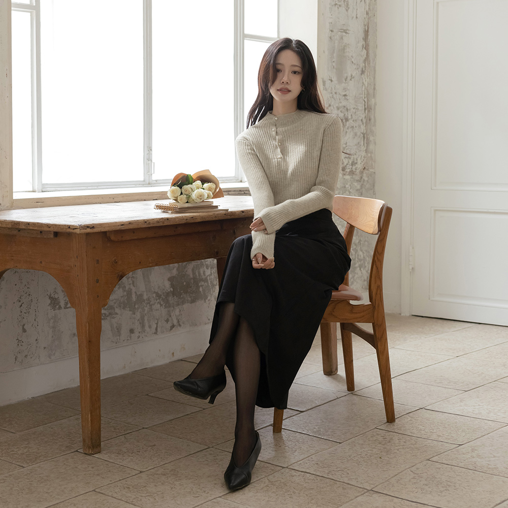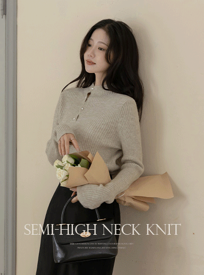 半高领 珍珠 扭曲 扣子 条绒 针织衫