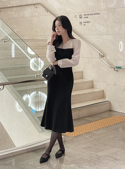 로에 分层 配色 连衣裙(+领带)(美人鱼/H字型ver)