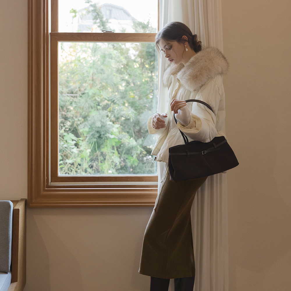 四角 翻毛皮 腰带 肩包