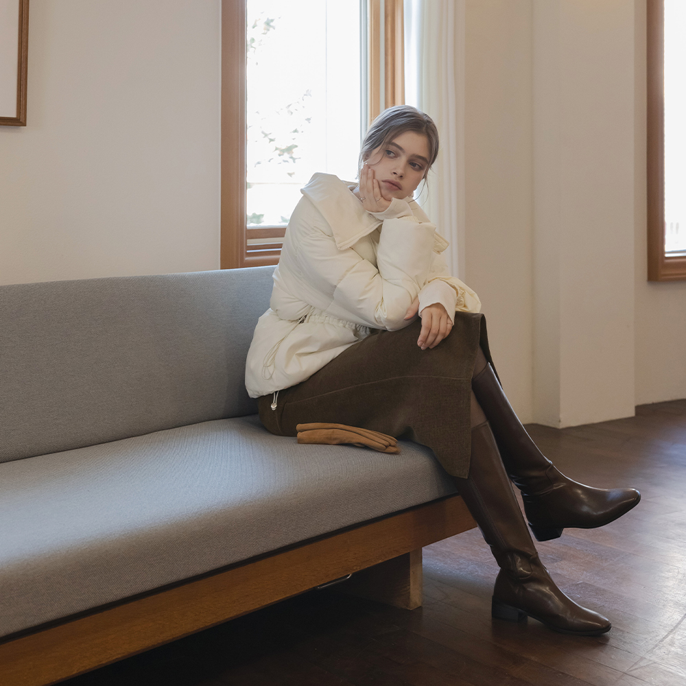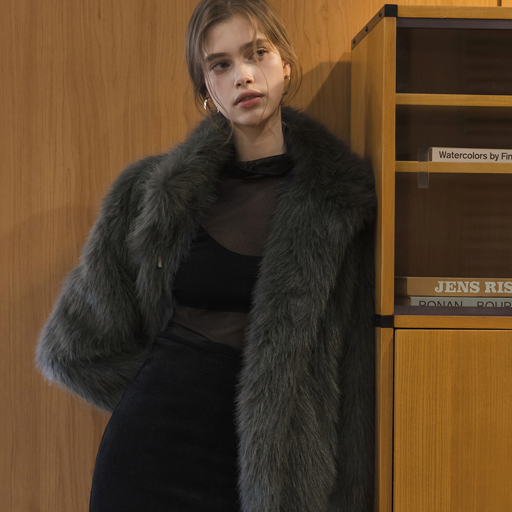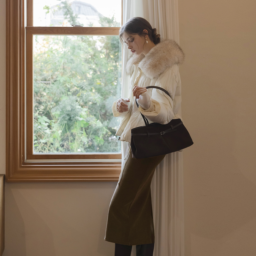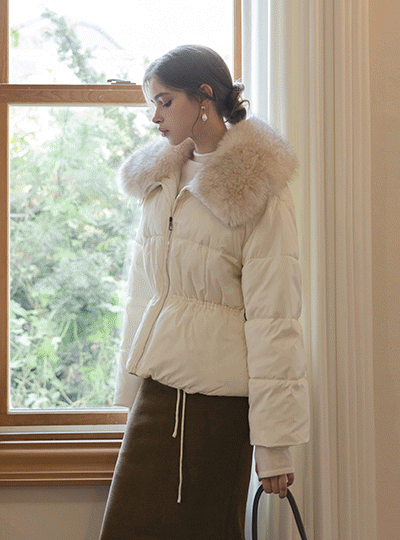 ODE 毛皮草 탈부착 抽绳 短 羽绒服