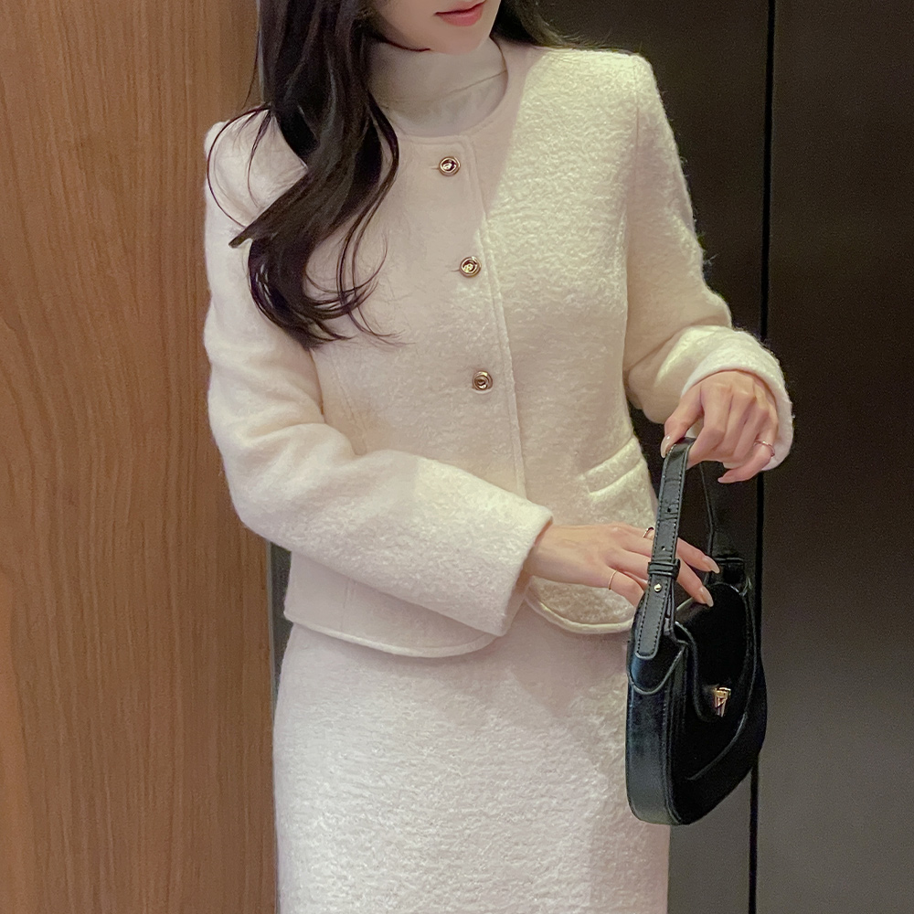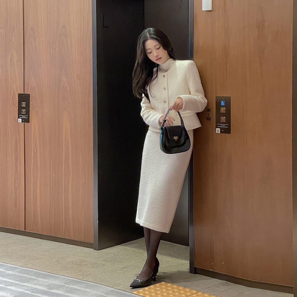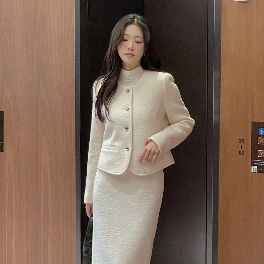 羊毛100% 结子花式 粗呢 Set-up 夹克