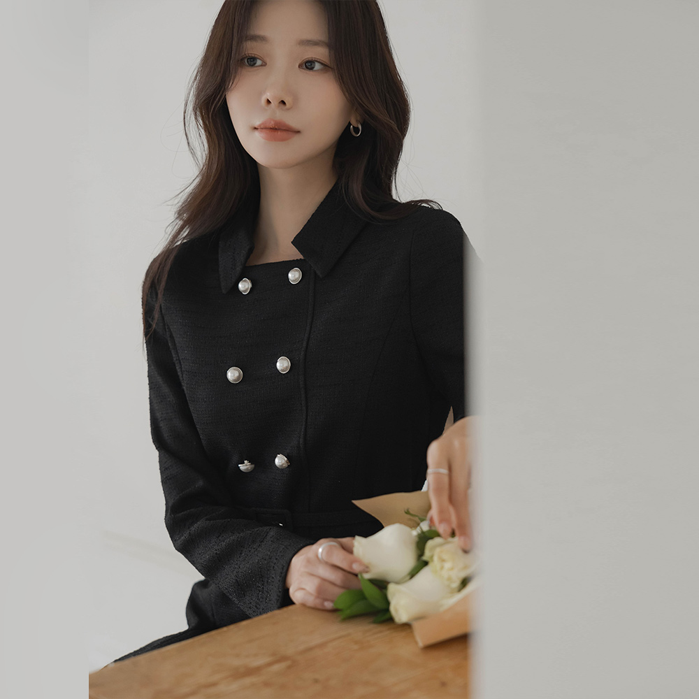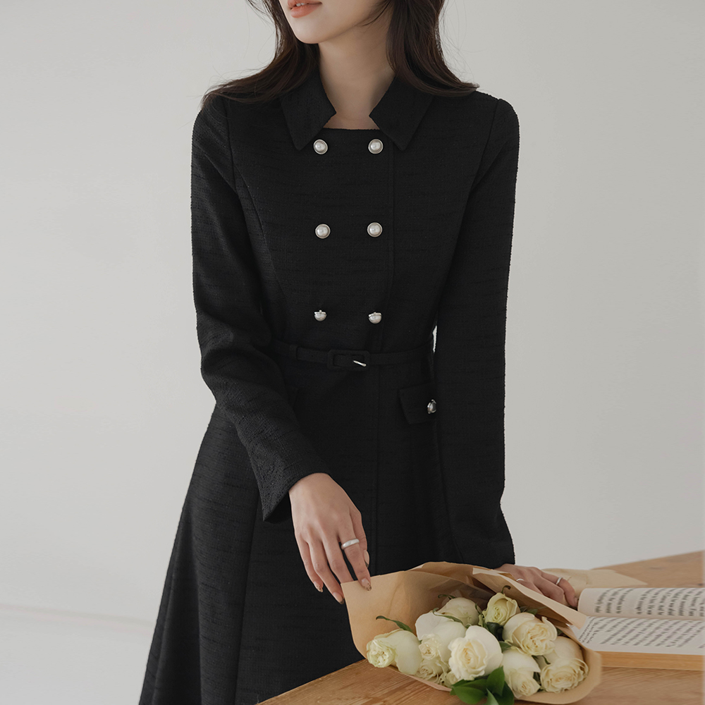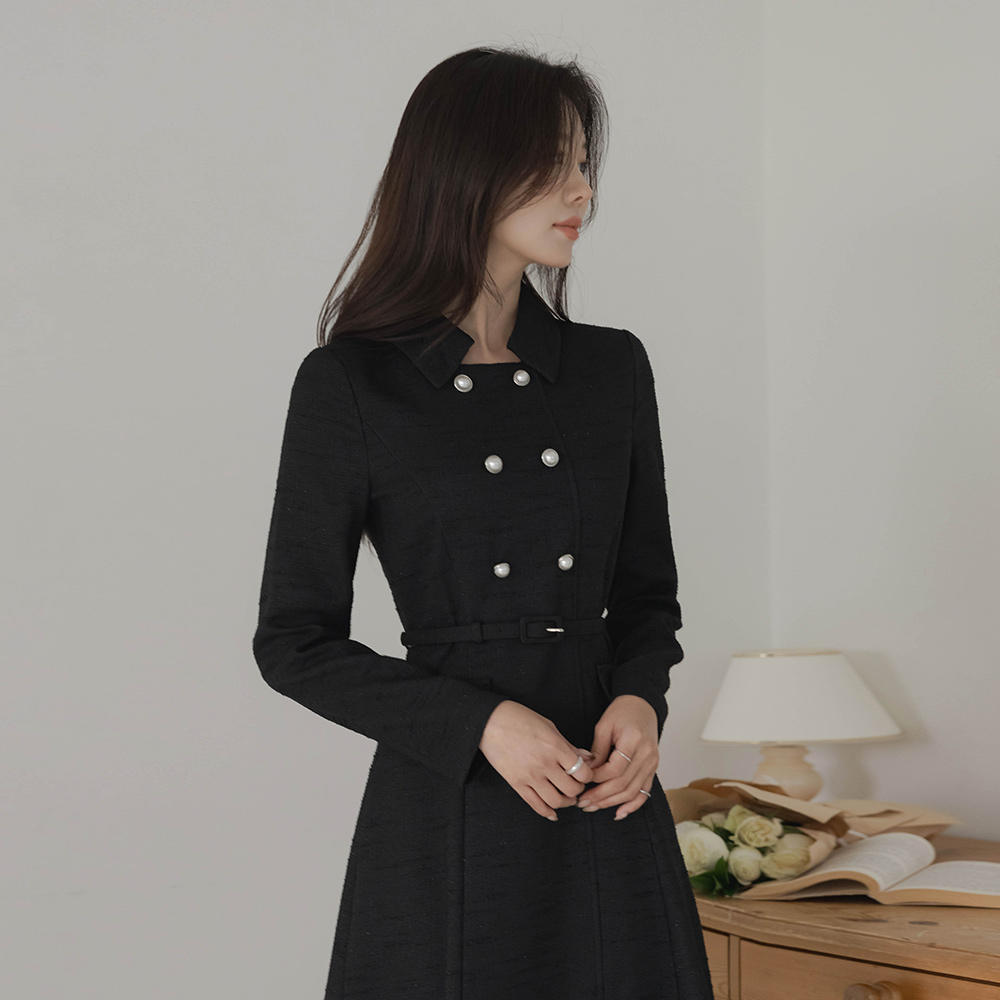 女性化的 珍珠 A字型 粗呢 连衣裙(+腰带)