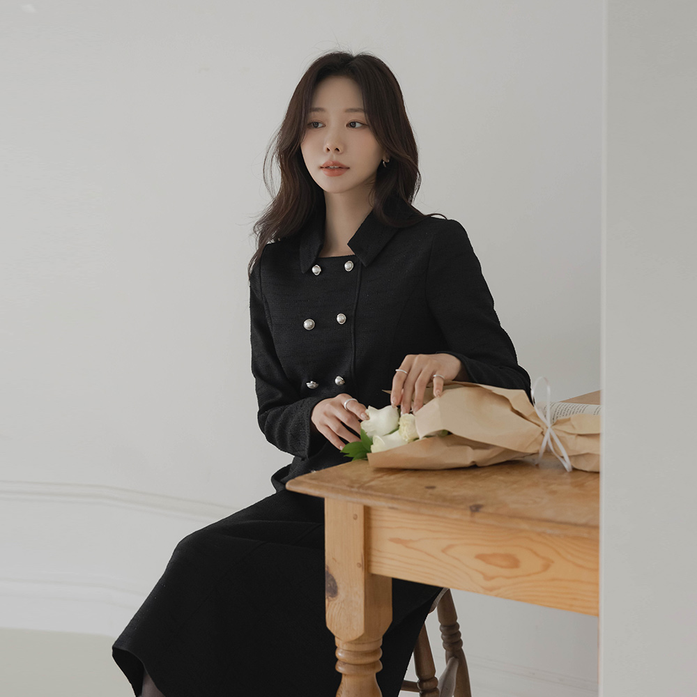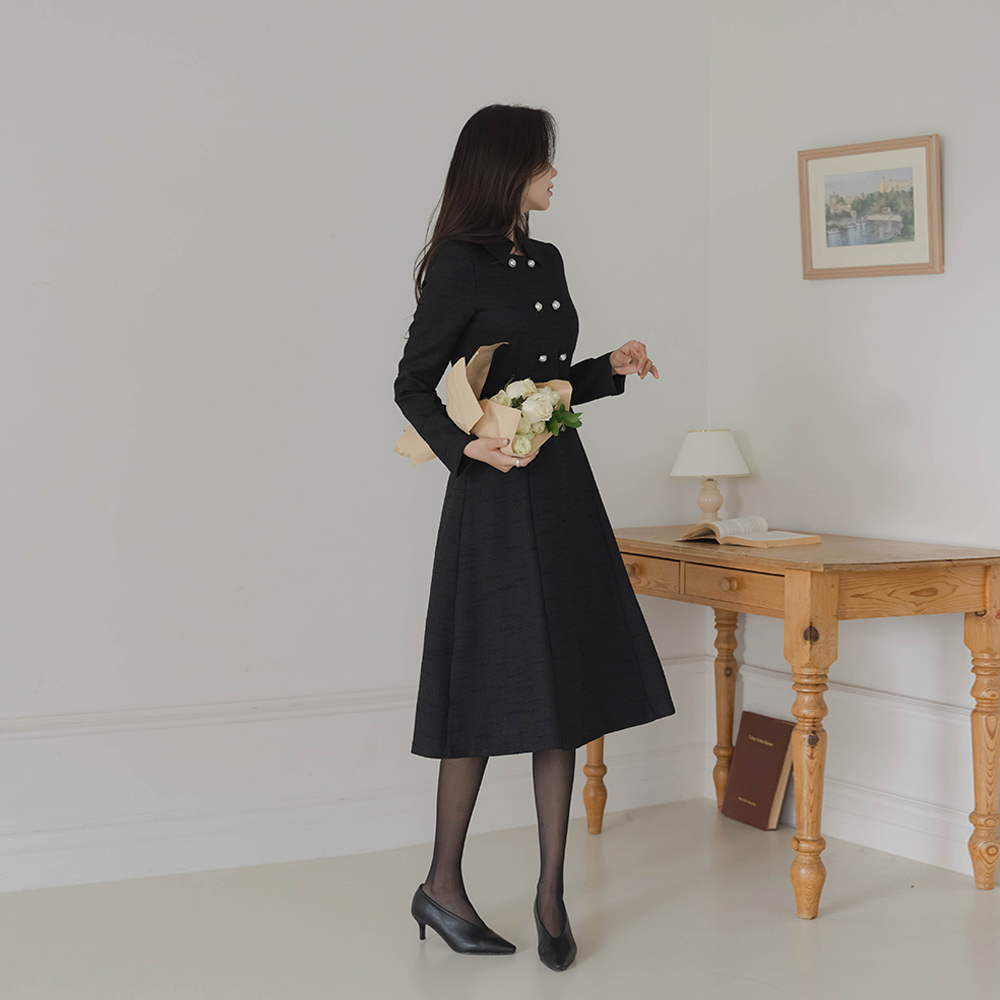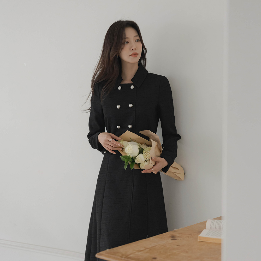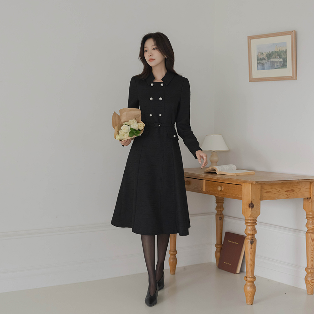 女性化的 珍珠 A字型 粗呢 连衣裙(+腰带)