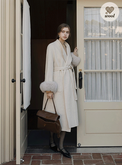 真 狐狸毛 羊毛 手工 长款 大衣(+腰带)