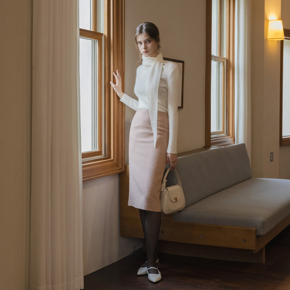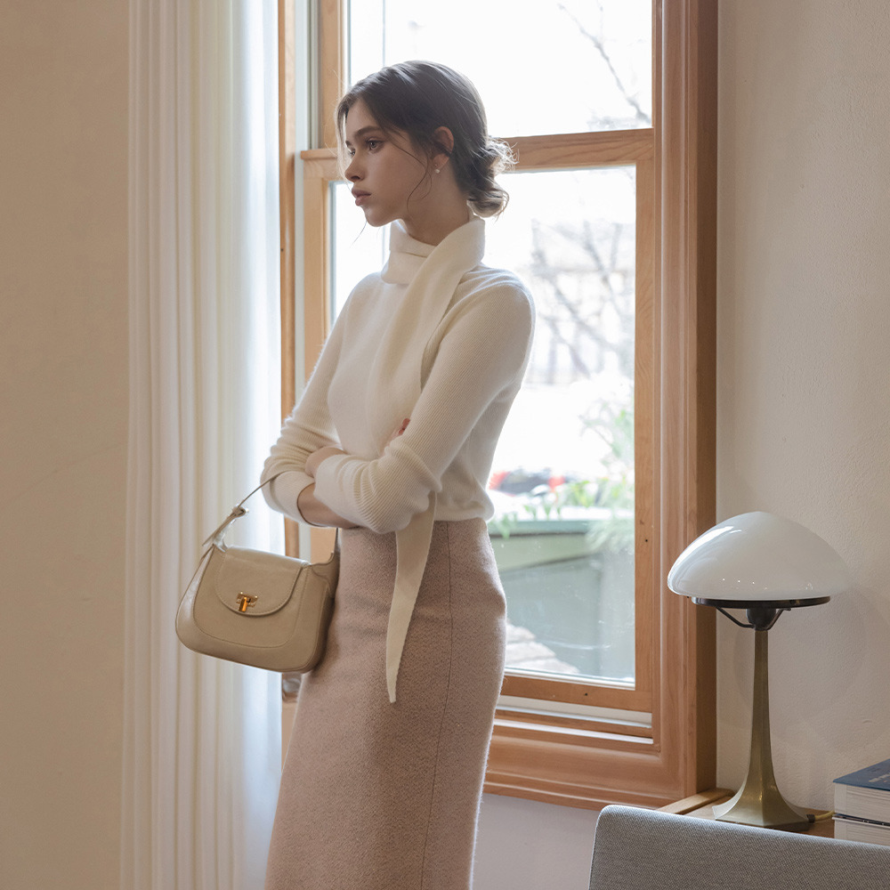 半高领 羊毛 围脖 针织衫(+腰带)