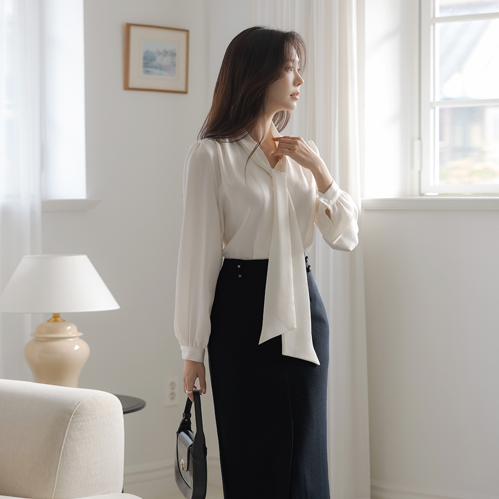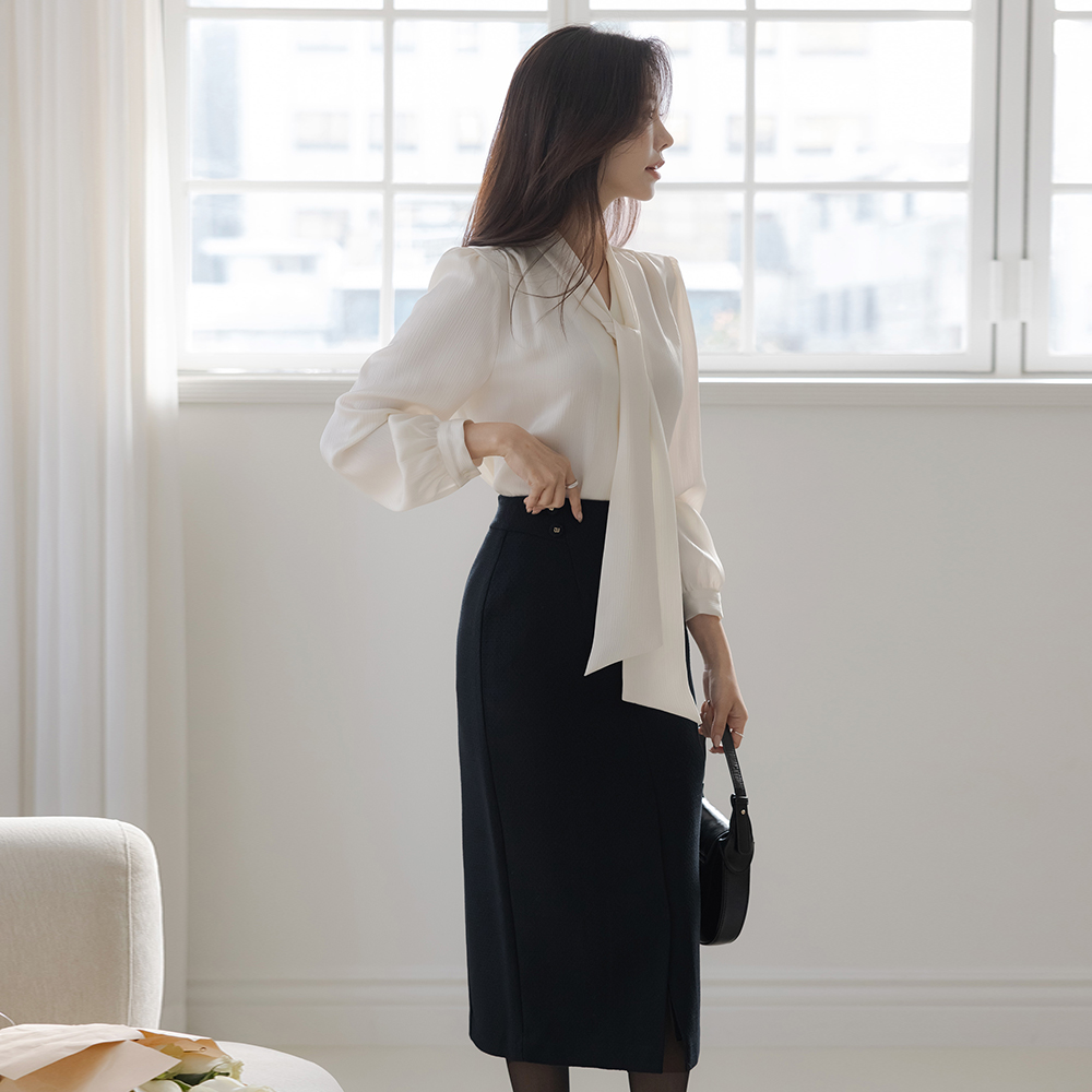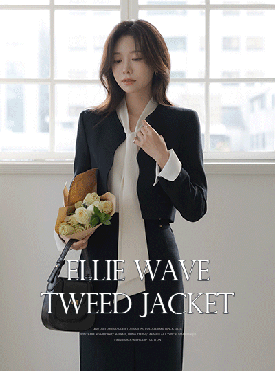 Eli 珍珠 袖 配色 물결 粗呢 Set-up 夹克