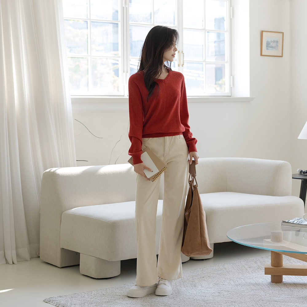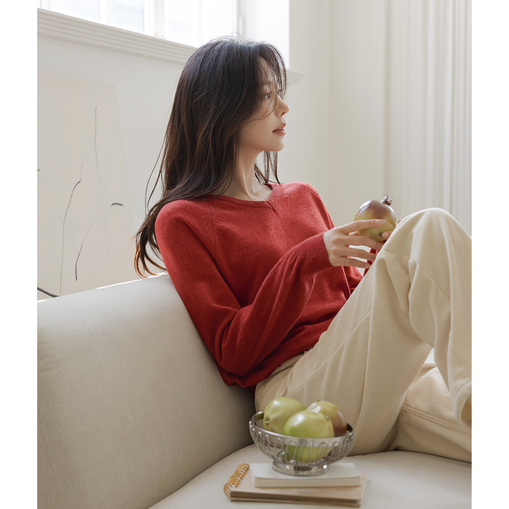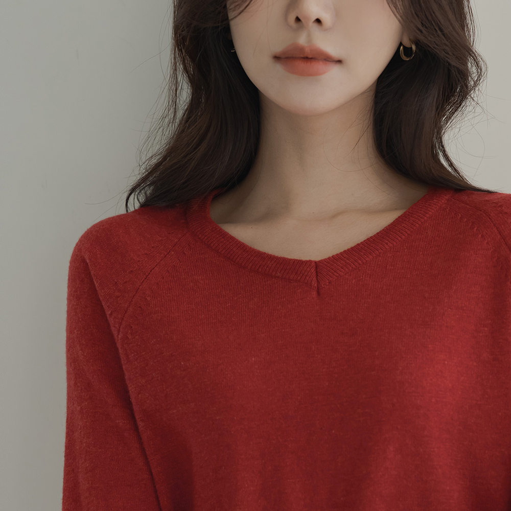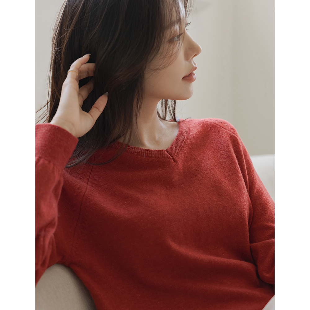V字领 细纹 羔羊毛 插肩 针织衫
