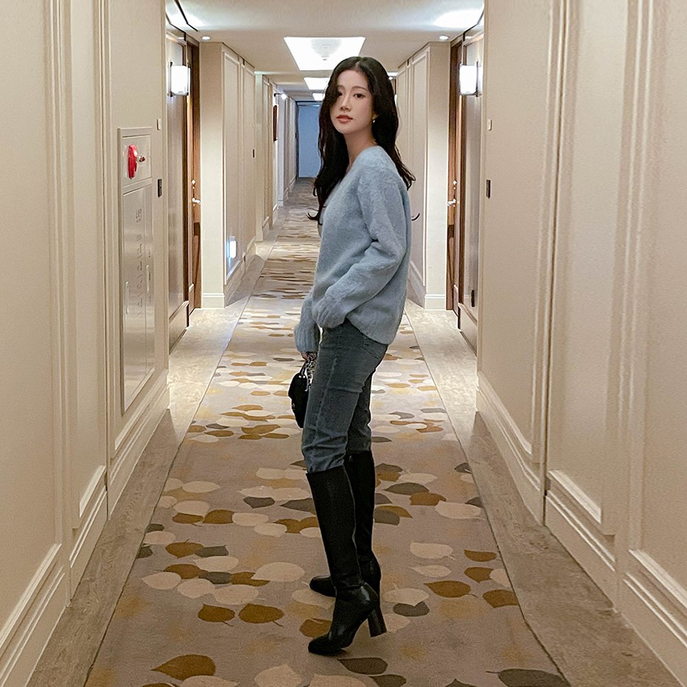 有光泽 人造 人造皮夹 长靴 高跟鞋
