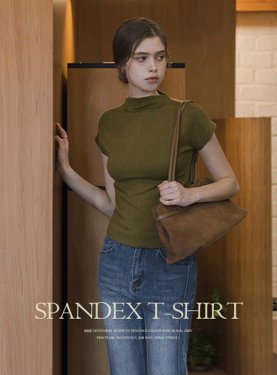 温和 半高领 领 弹力 T恤衫