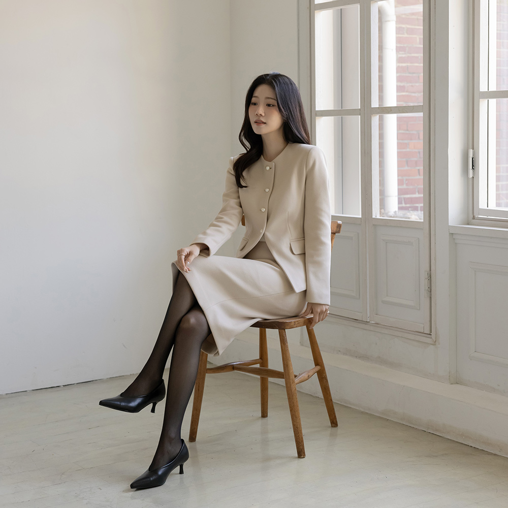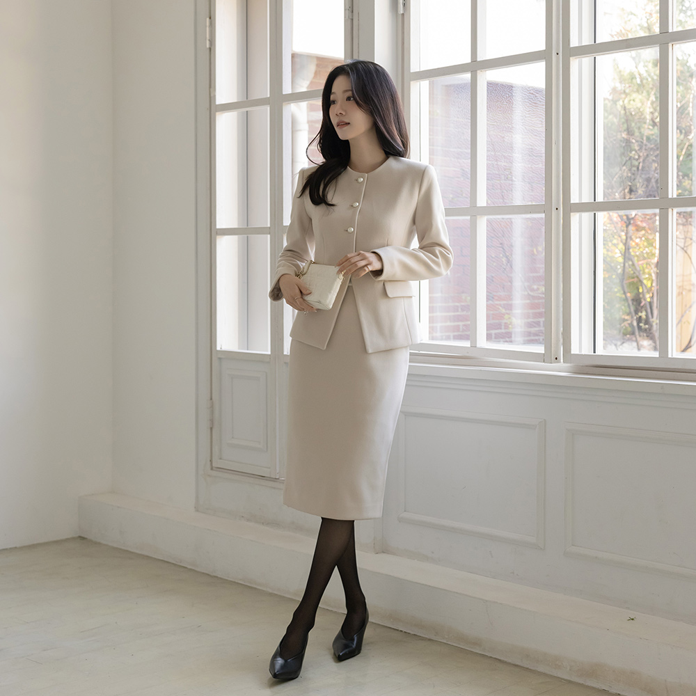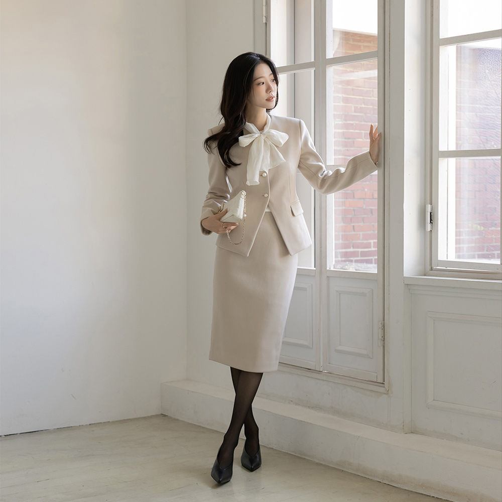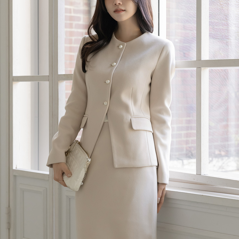 女性化的 珍珠 扣子 Set-up 夹克(+领带)
