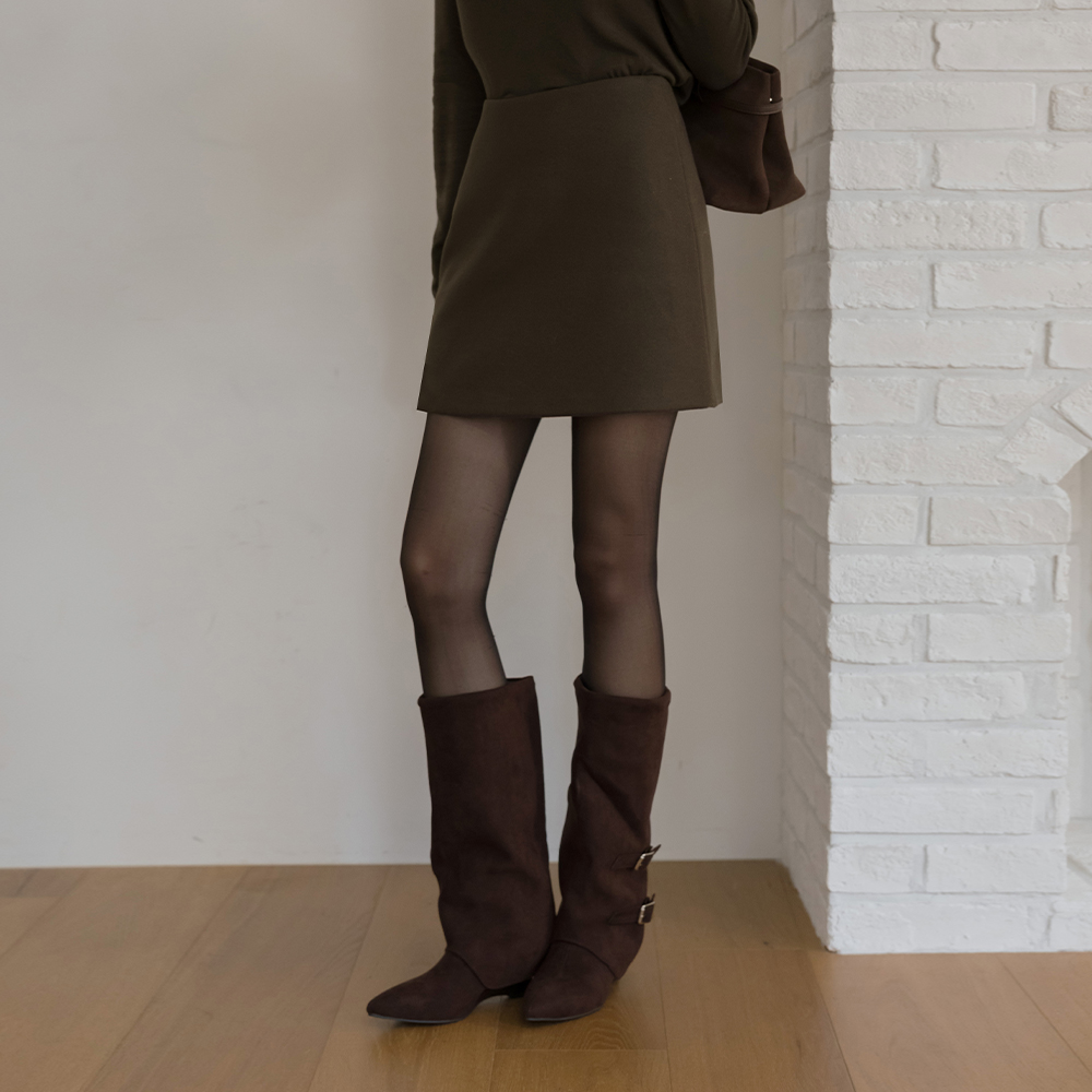 翻毛皮 带扣 点缀 中跟 靴子