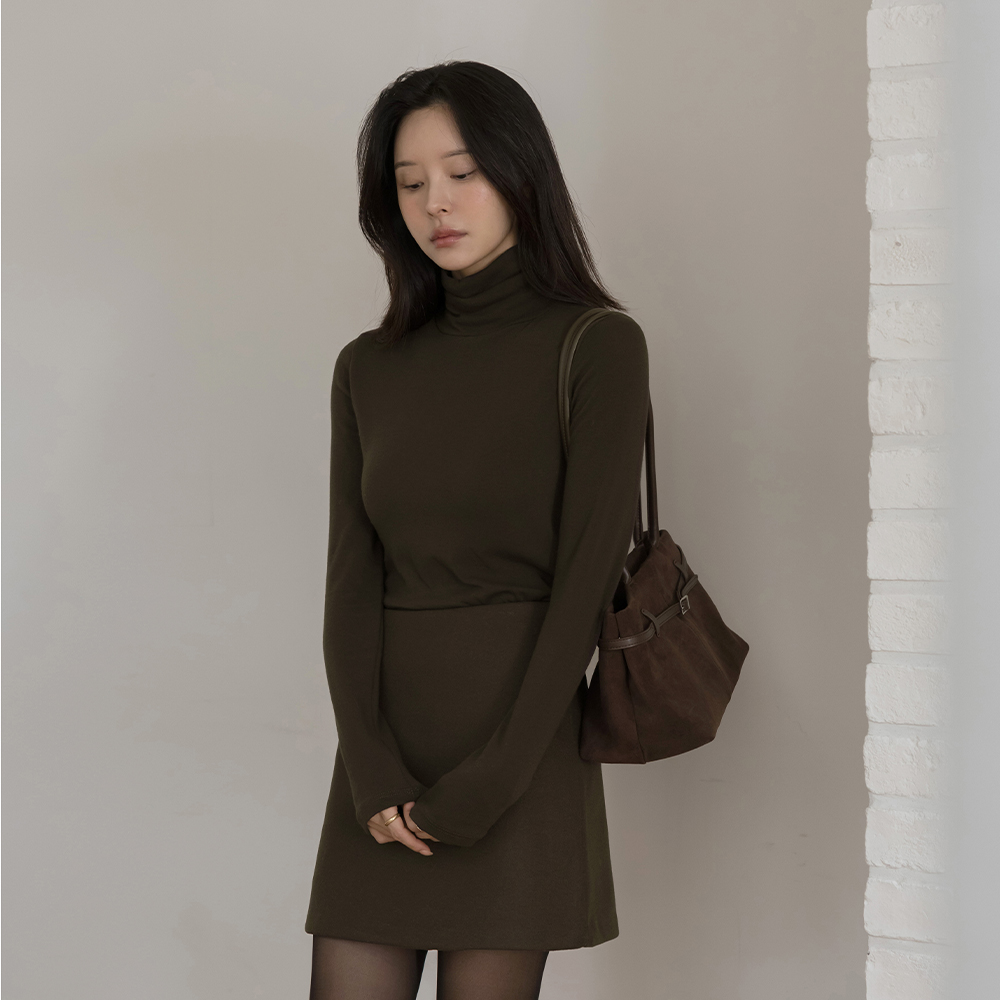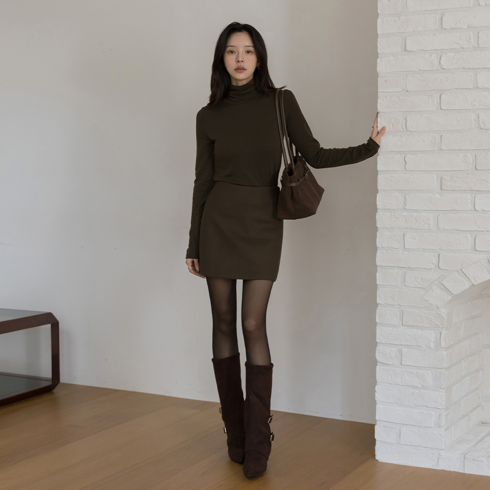 颜色 点缀 羊毛 弹力 高领 T恤衫