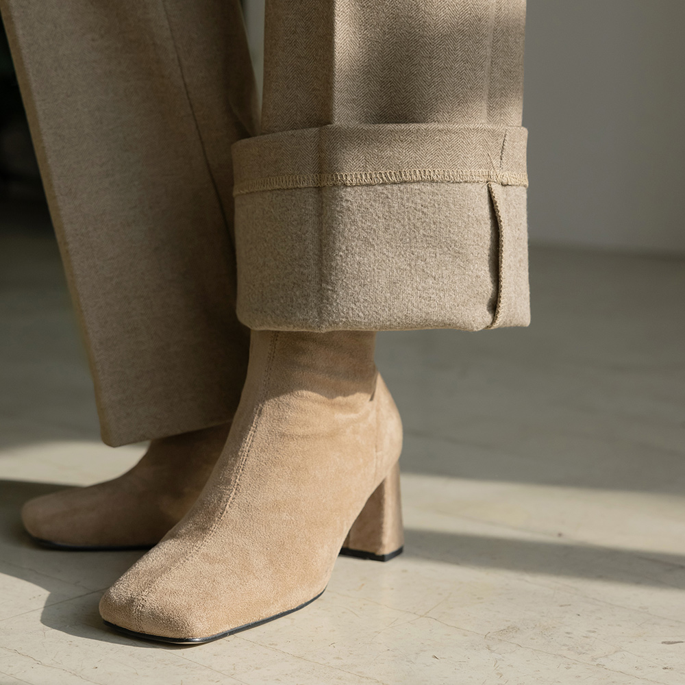 秋季 斯利姆 Square Toe 脚踝 靴子 高跟鞋