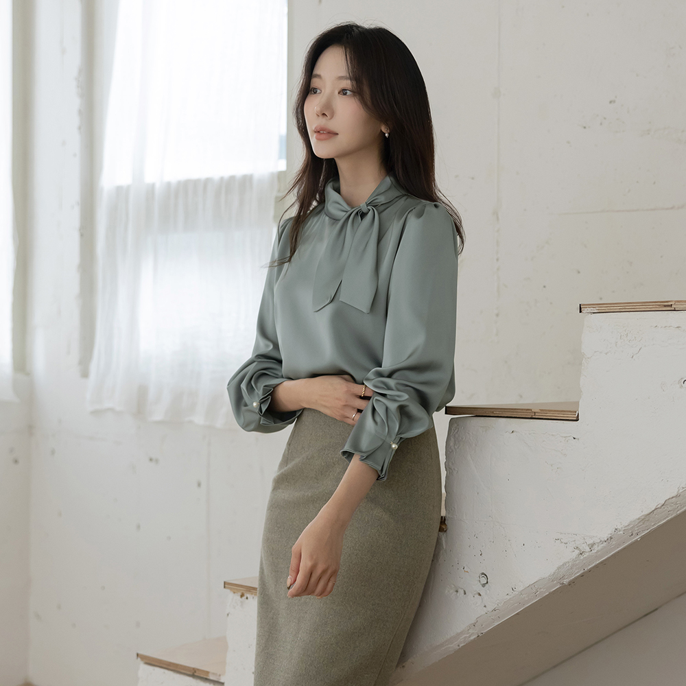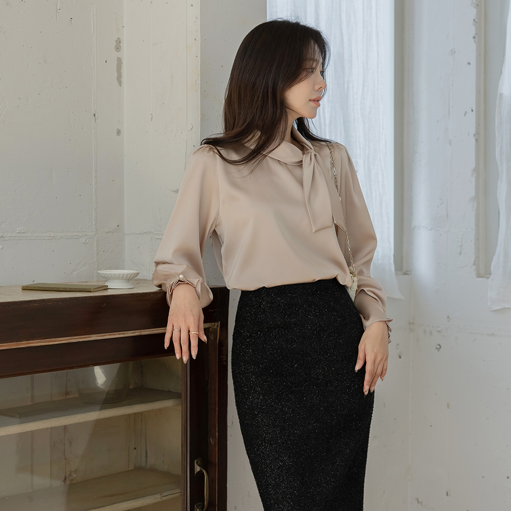围巾领 绸缎 罩衫