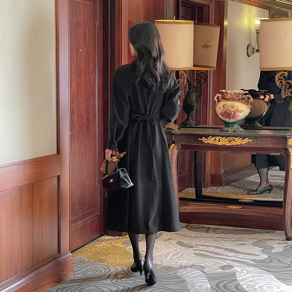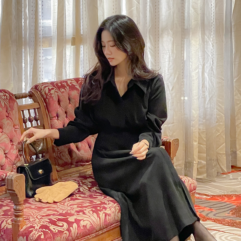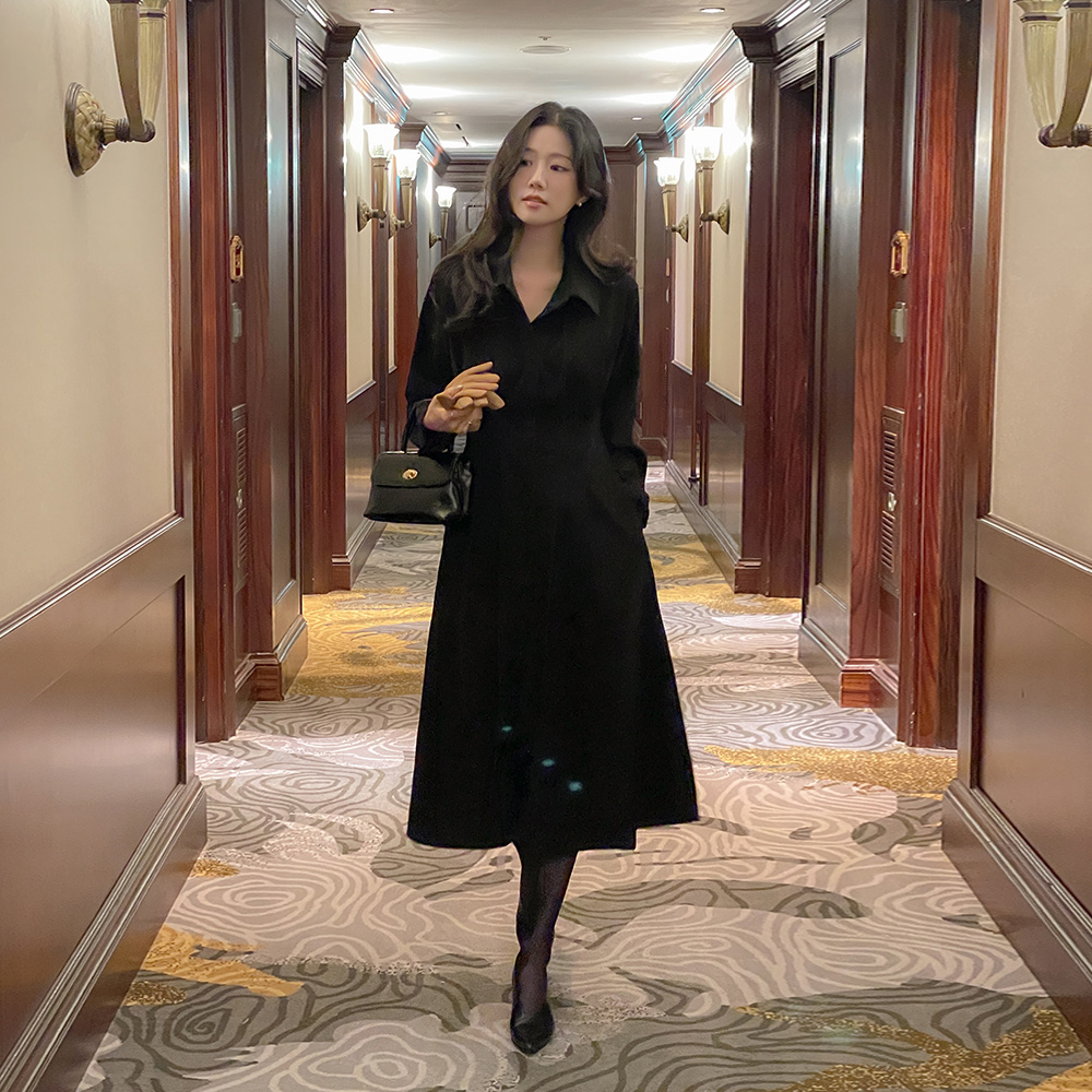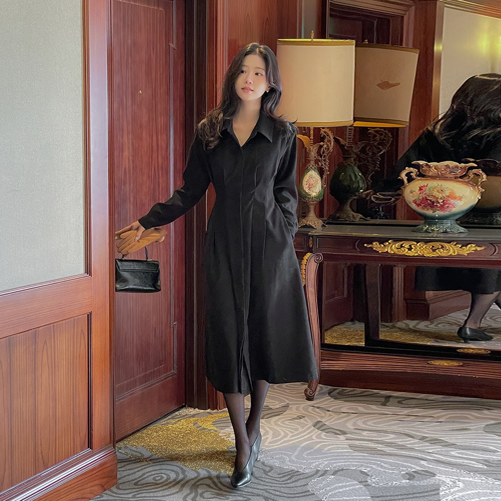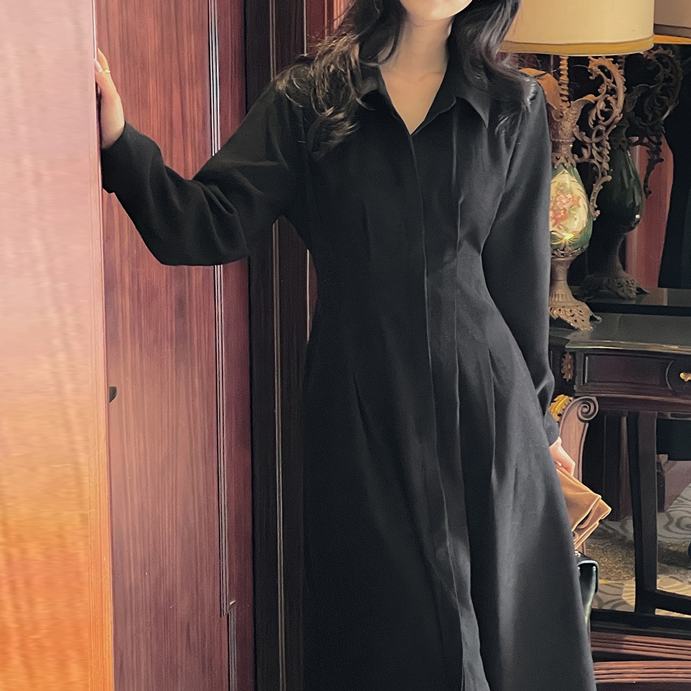 柔软的 细褶 系带绳子 A字型 衬衫 连衣裙