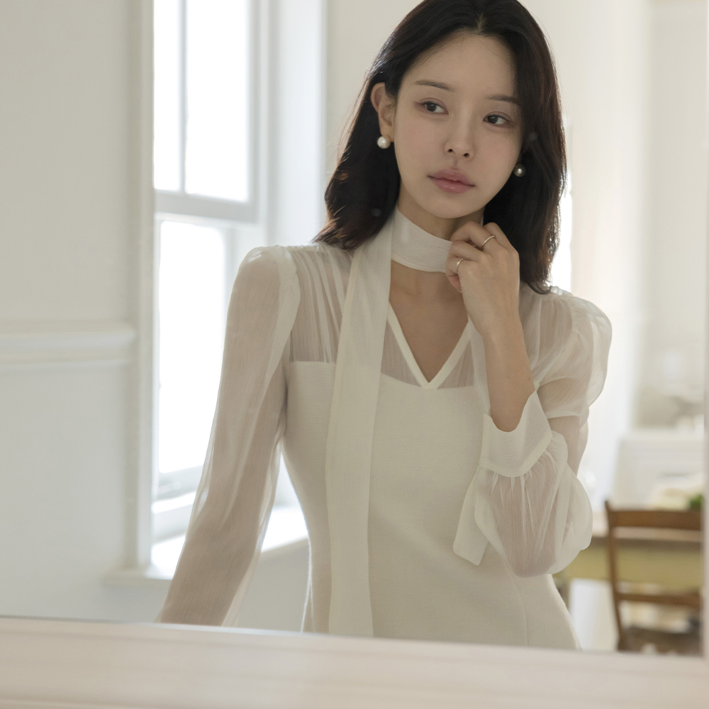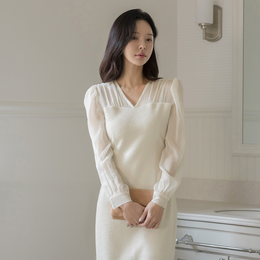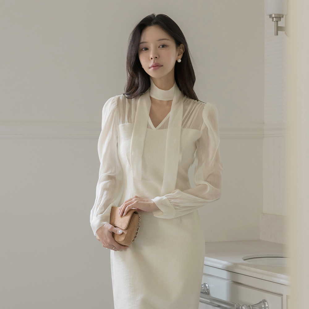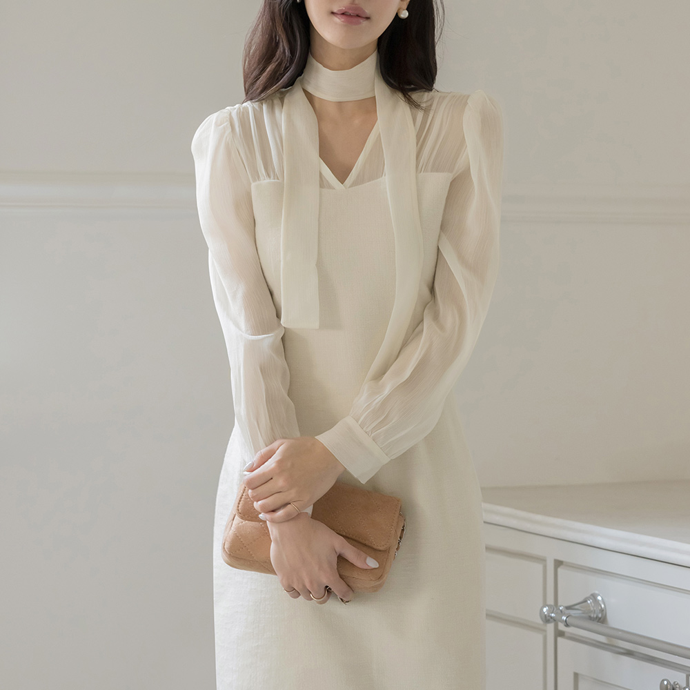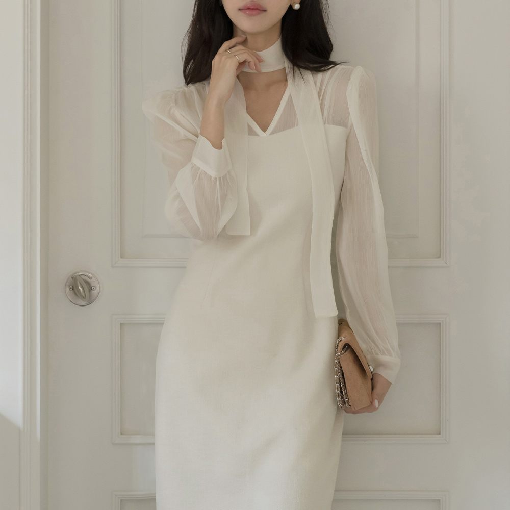 分层 配色 H字型 羊毛 粗呢 连衣裙(+领带)