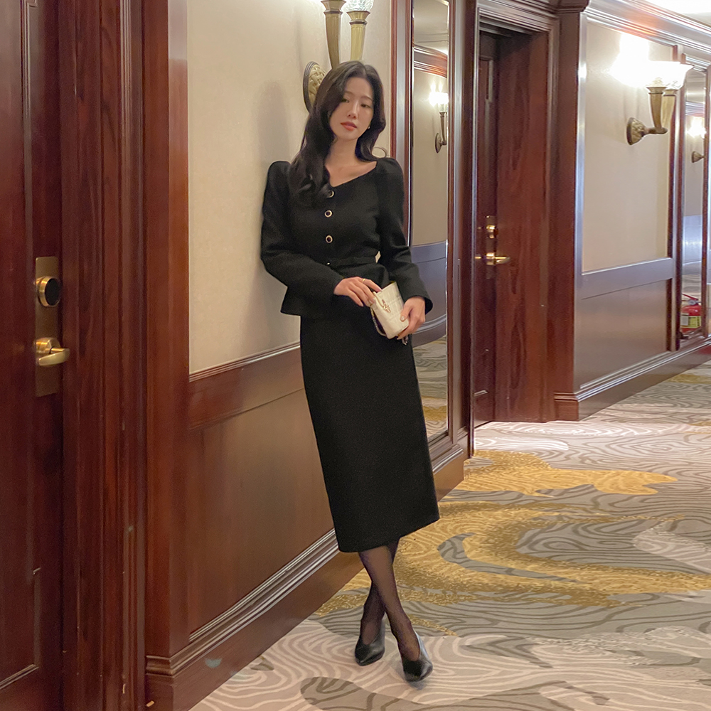 粗呢 荷叶边 Set-up 罩衫(+腰带)