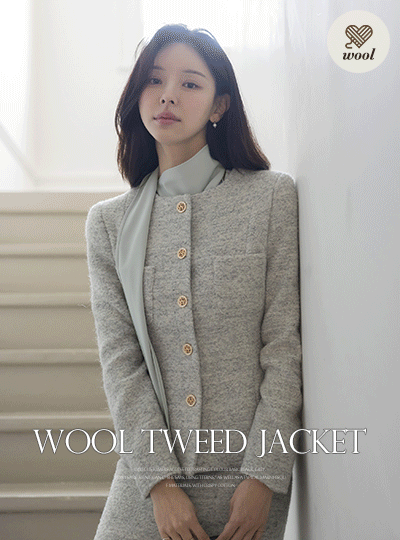 ODE 结子花式 羊毛 荷叶边 粗呢 Set-up 夹克