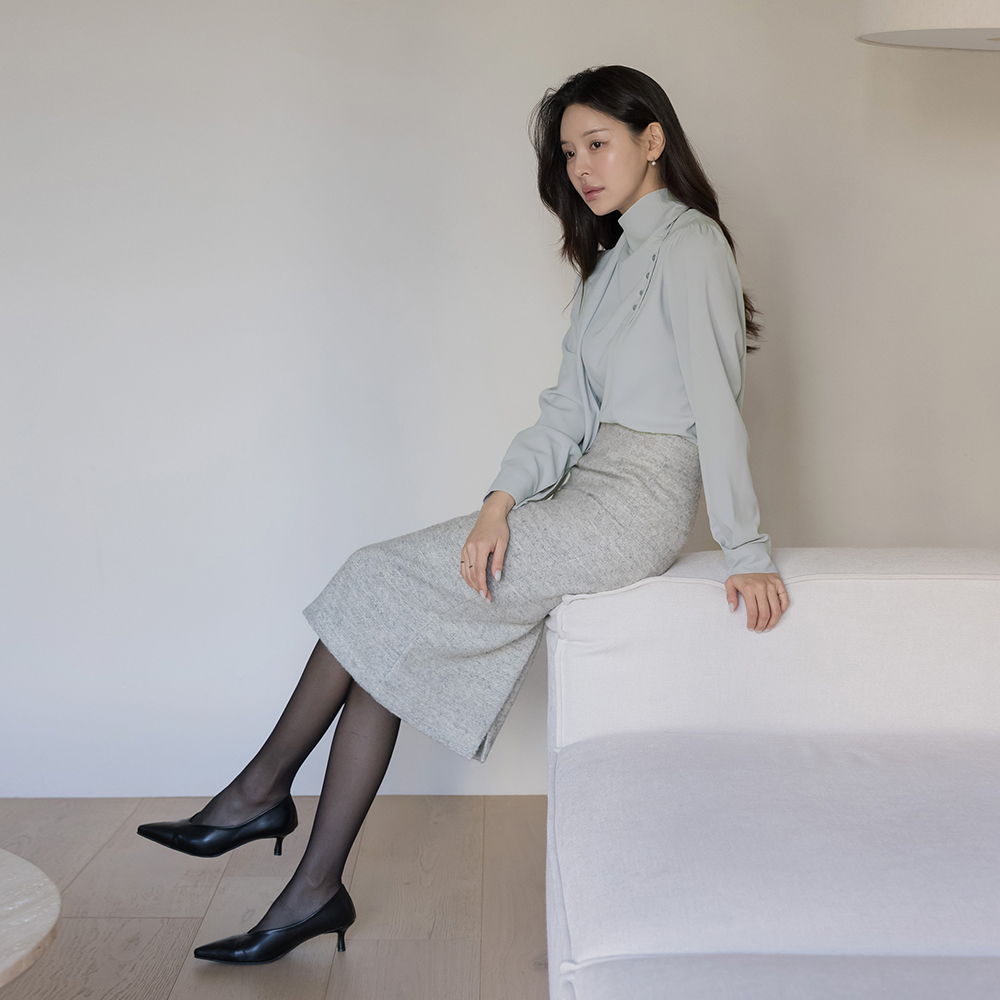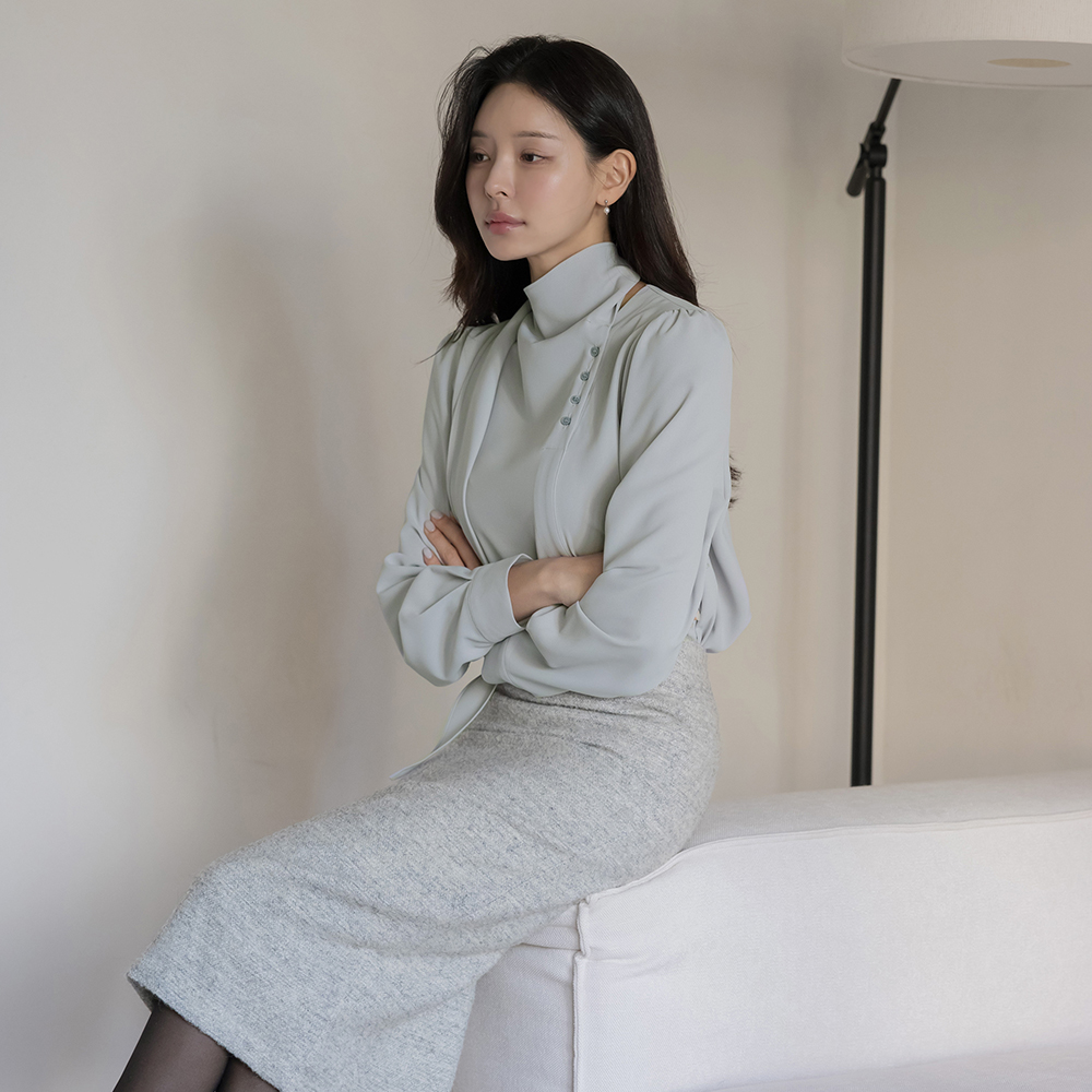 围巾领 不规则 扣子 罩衫