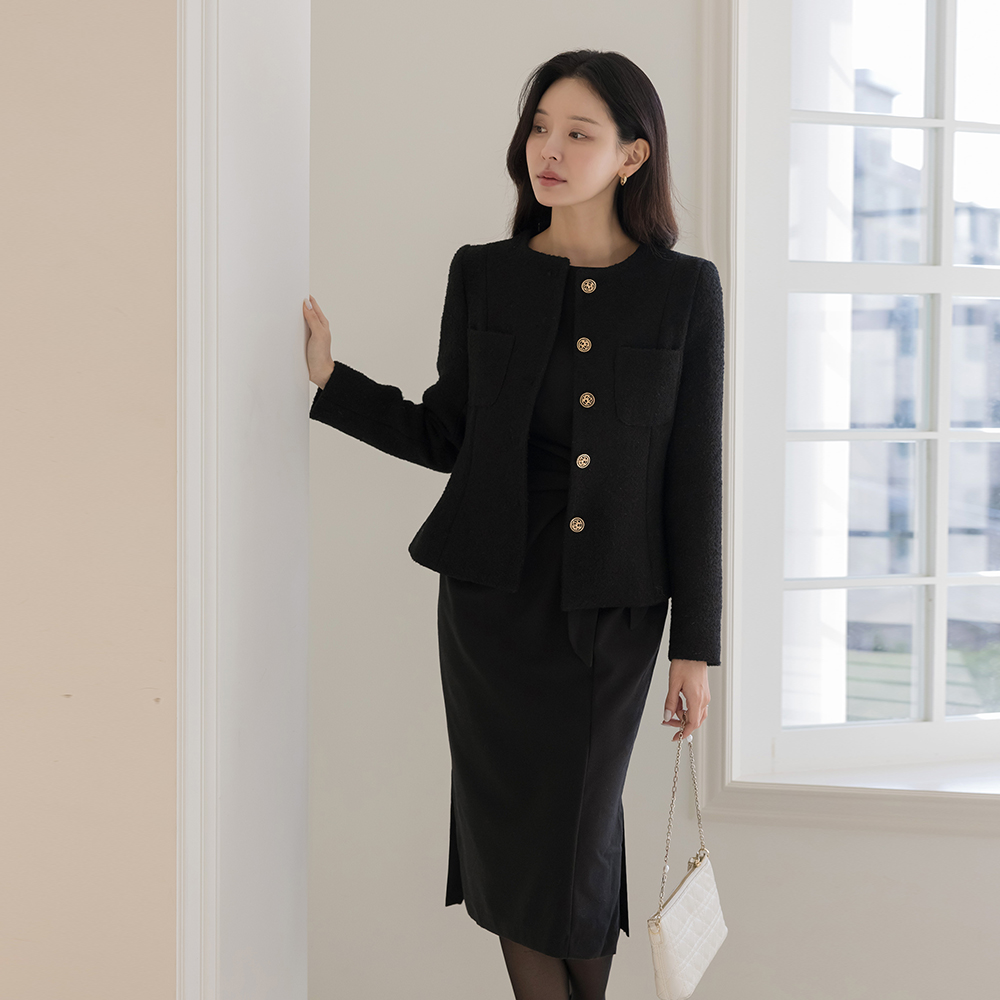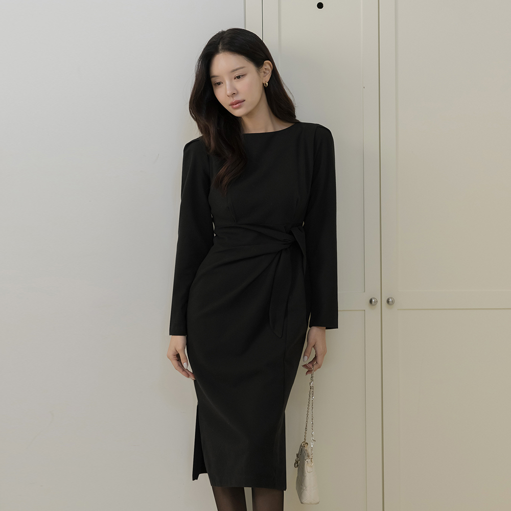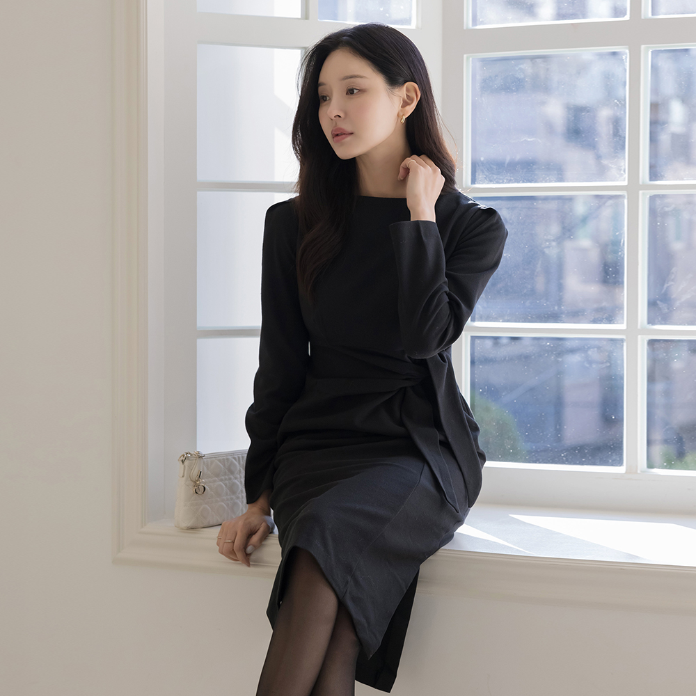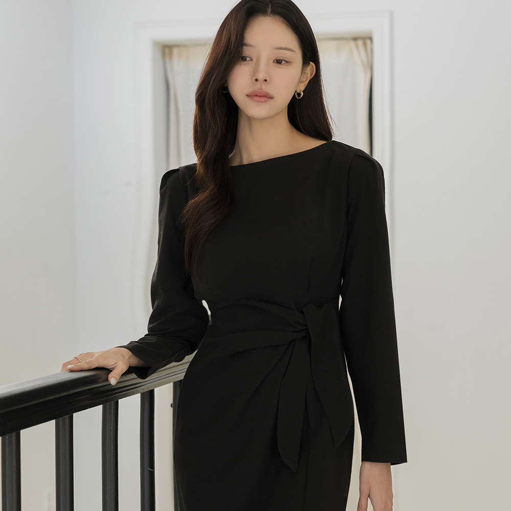 船形领 打结 H字型 连衣裙