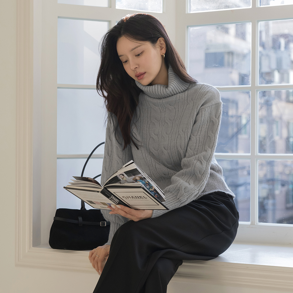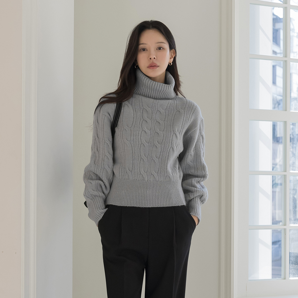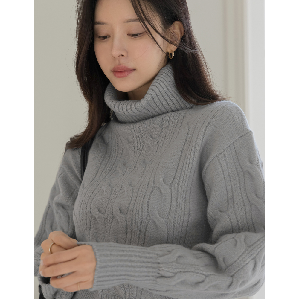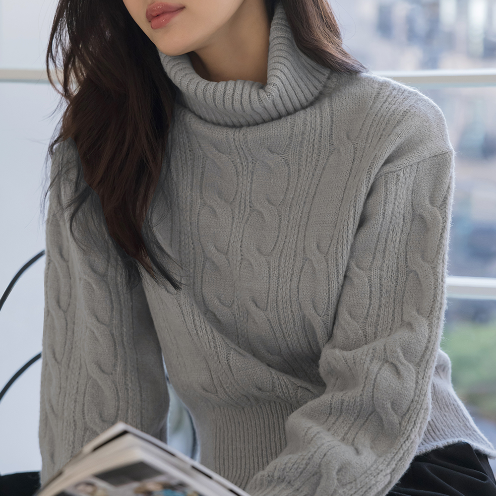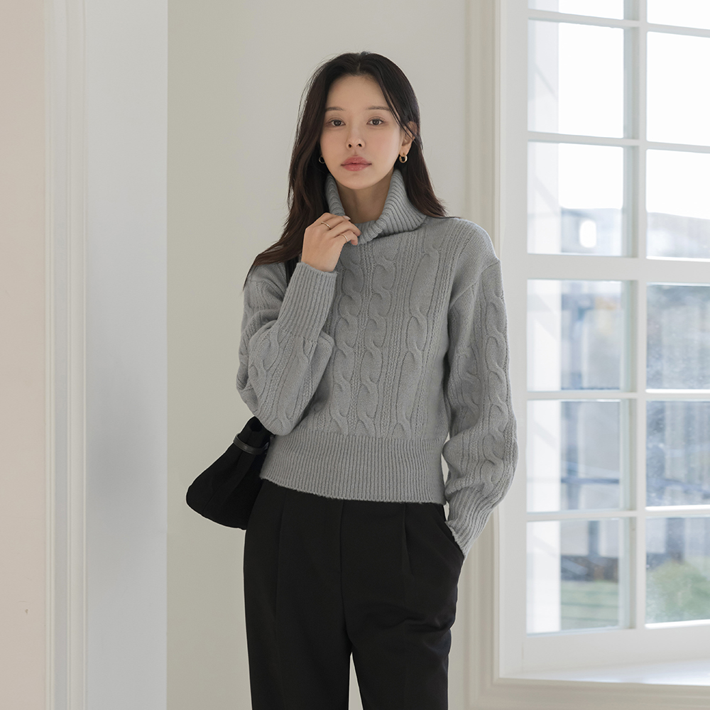高翻领 7分裤 麻花 针织衫