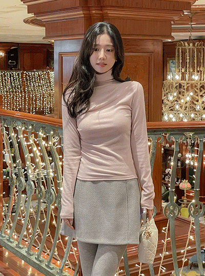 细密 拉绒 褶皱 高领 T恤衫