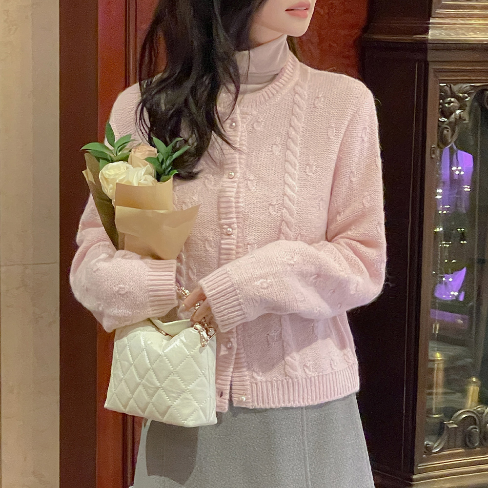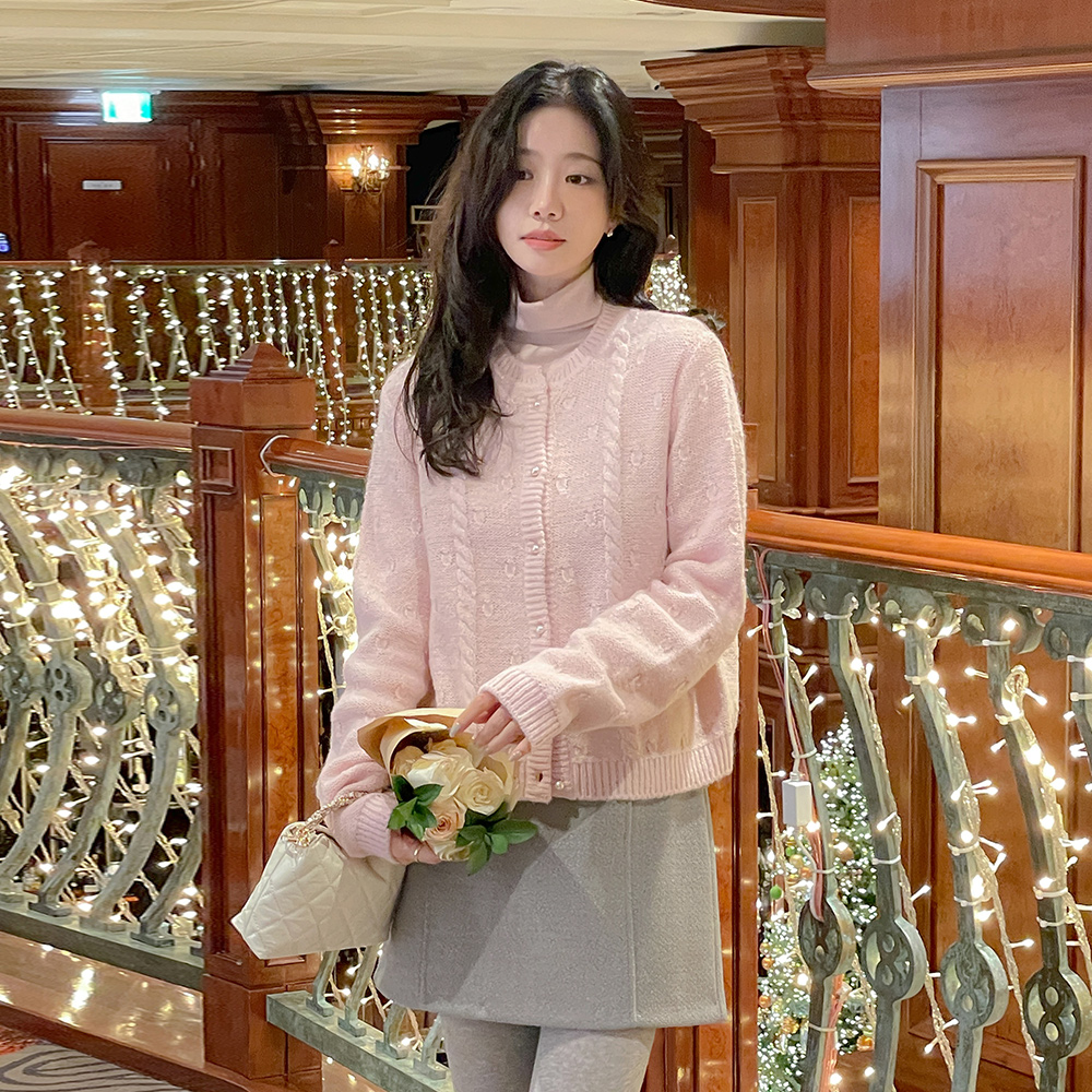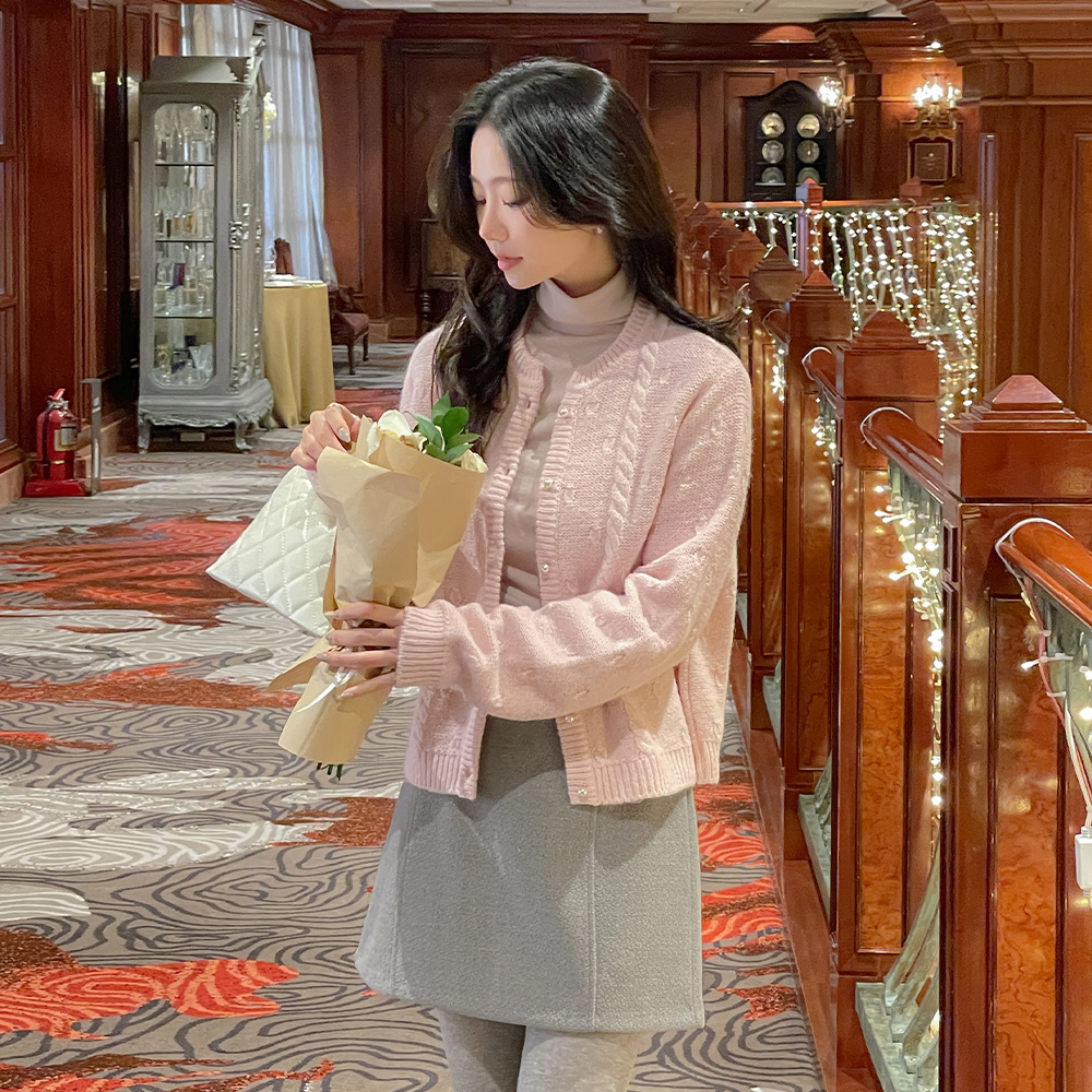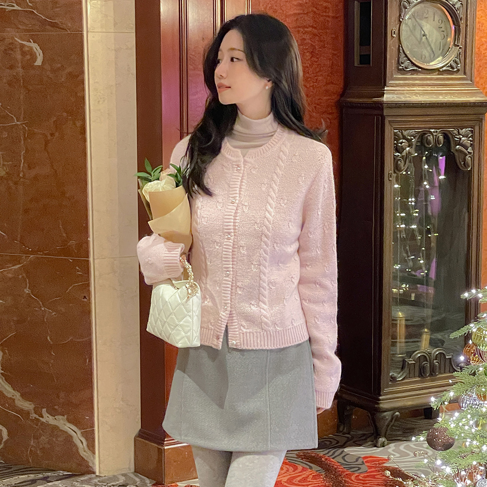 糖 羊驼毛&羊毛 珍珠扣 开衫