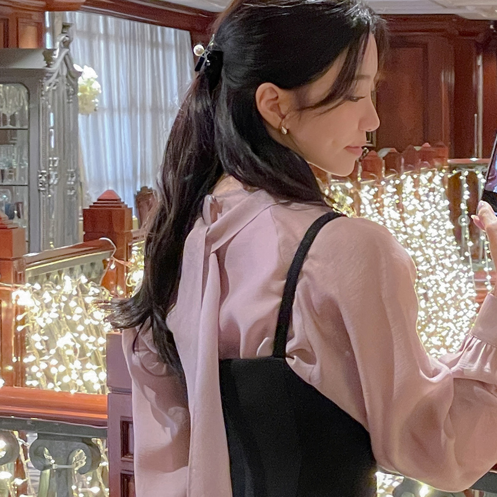 浪漫 珍珠 点缀 翻毛皮 리본핀