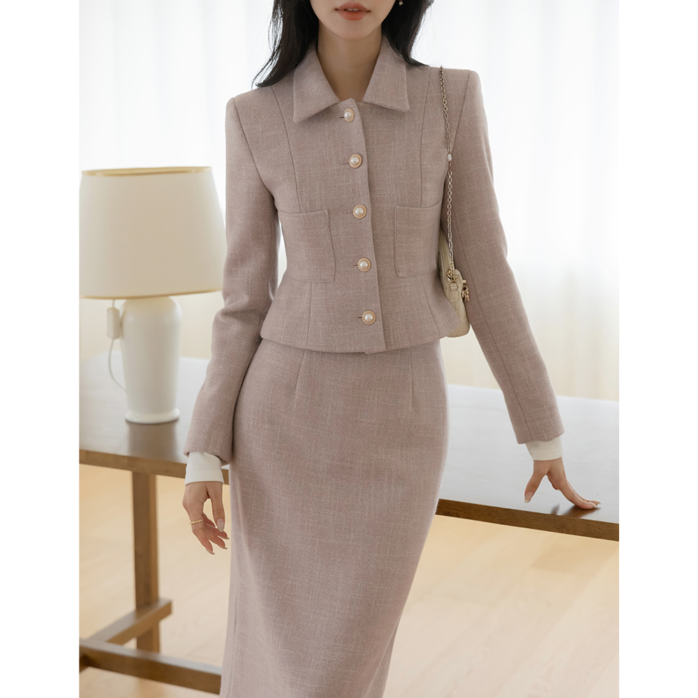Merry 7分裤 斯利姆 线条 Set-up 夹克(+围巾)