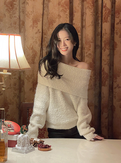 苗条 结子花式 羊毛 稍厚的 露肩 针织衫