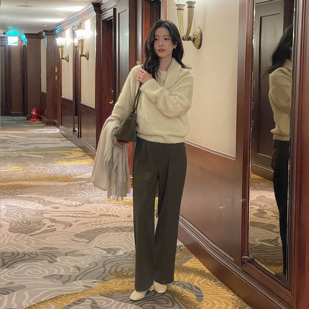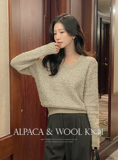 V领 羊驼毛&羊毛 穗饰 稍厚的 针织衫