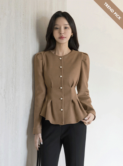 소피아 珍珠 荷叶边 泡泡袖 罩衫