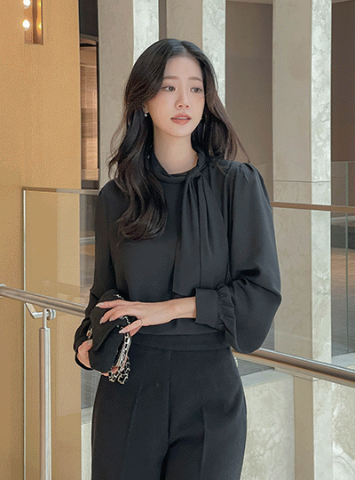 ELLE 摩登 围巾领 罩衫